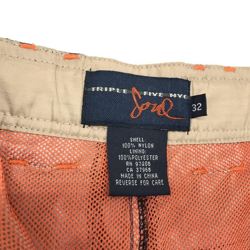 TRIPLE FIVE SOUL トリプルファイブソウル ナイロンカーゴパンツ パラシュートパンツ カジュアル 古着 ランク:B 通常の着用に伴う使用感が見られますが、 ダメージの少ない比較的良好な商品です。 ※写真にないものは付属しておりません。 裾汚れあり カラー:ネイビー ブランド名:TRIPLE FIVE SOUL |