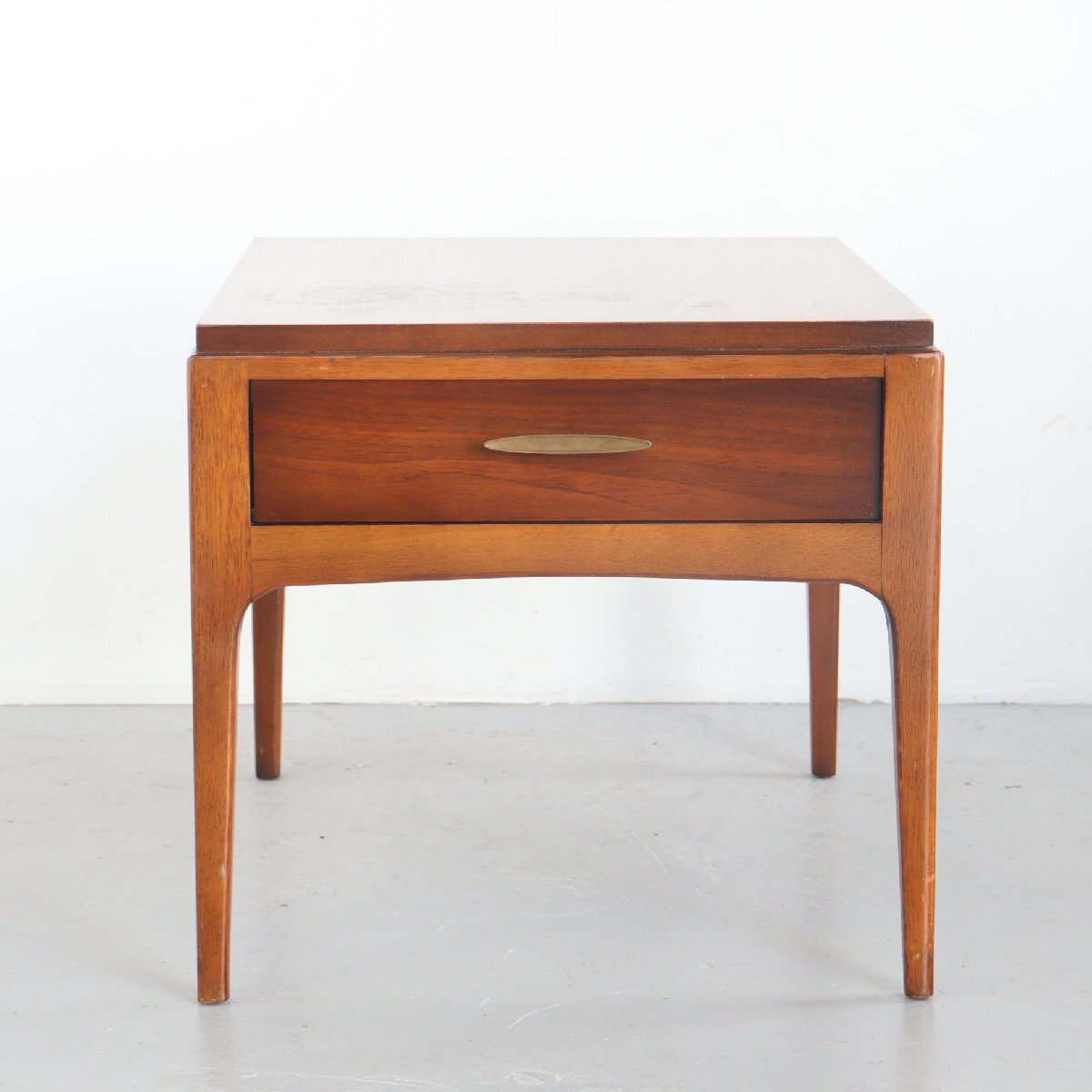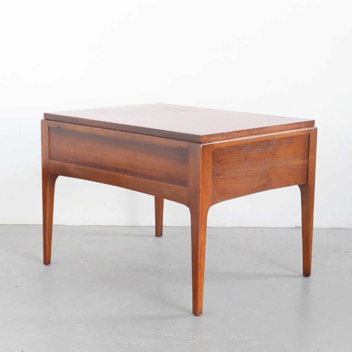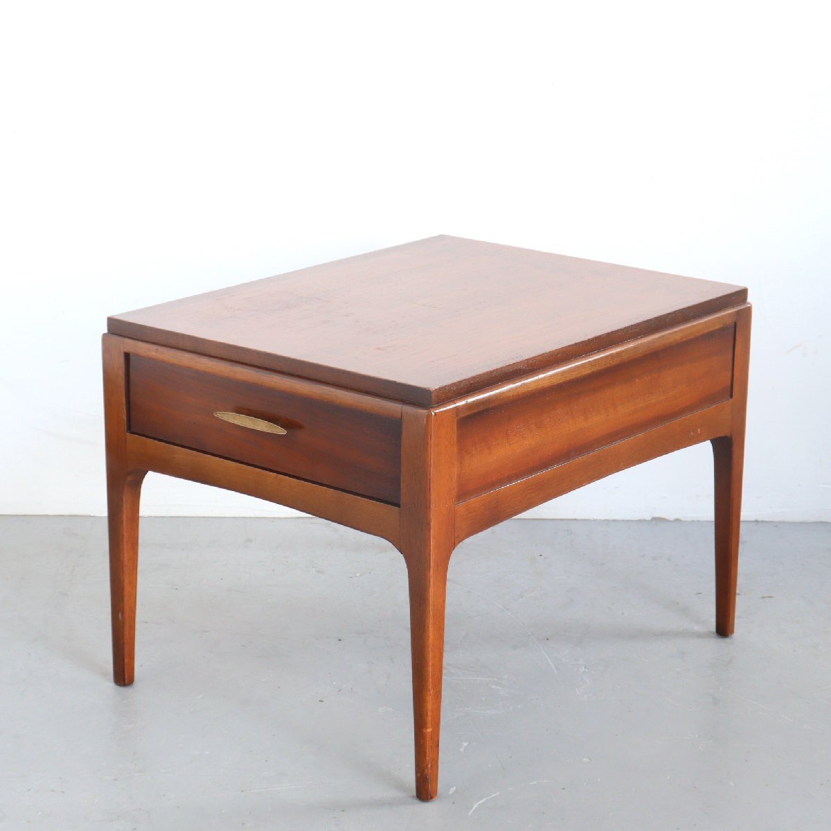 | 商品説明 explanation | 1970年頃のミッドセンチュリー期を代表する家具メーカー「LANE」社製のサイドテーブルです。 ウォールナット材が使用されており、ミッドセンチュリー期らしい良い雰囲気です。 引き出しに書籍や小物の収納することができ、ベッドサイドやリビングなどの場所に最適なサイズ感です。 ご自宅や店舗にいかがでしょうか。 |