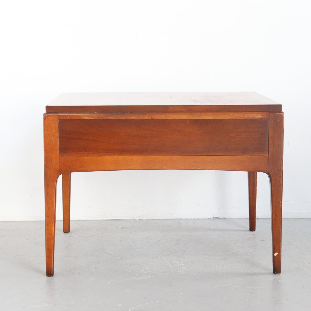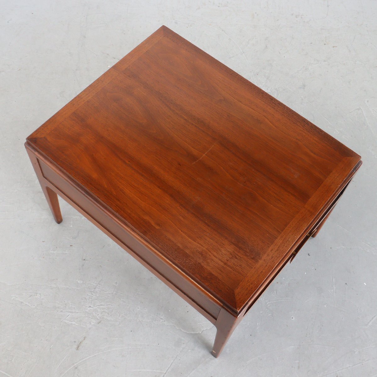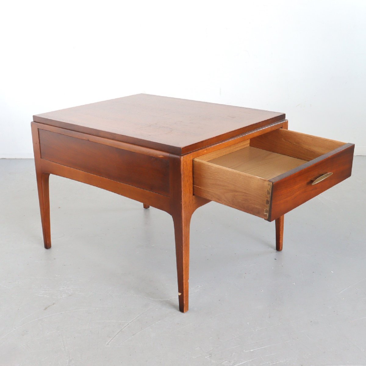 | 商品説明 explanation | 1970年頃のミッドセンチュリー期を代表する家具メーカー「LANE」社製のサイドテーブルです。 ウォールナット材が使用されており、ミッドセンチュリー期らしい良い雰囲気です。 引き出しに書籍や小物の収納することができ、ベッドサイドやリビングなどの場所に最適なサイズ感です。 ご自宅や店舗にいかがでしょうか。 |