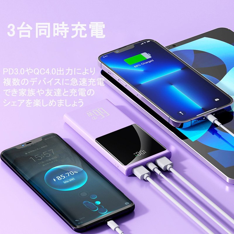 薄型 急速充電 大容量30000mAh スマホ充電 モバイルバッテリー PSE認証 iPhone iPad Android PD3.0 USB Cポート デュアル QC 4.0 USBA