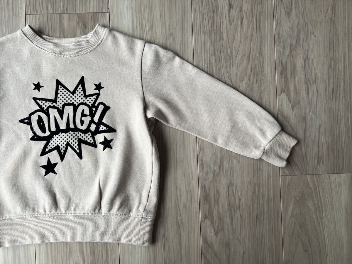 すぐにサイズアウトしましたので、着用回数は少なめですがよく見るとお写真9枚目から11枚目のように数箇所、オレンジ色のシミがあります。