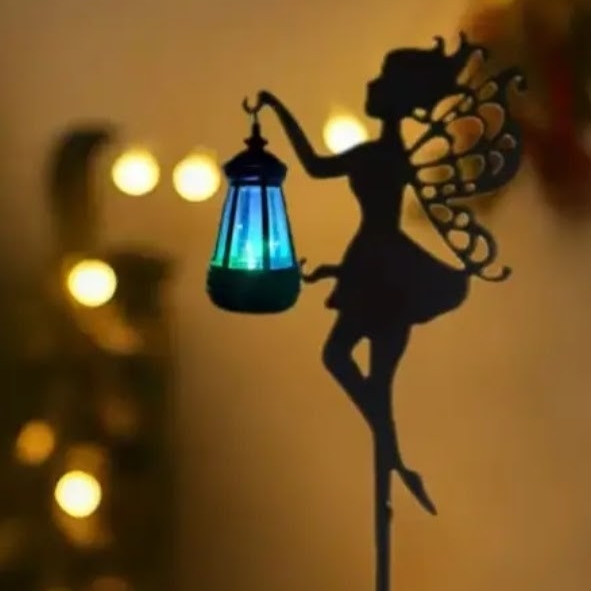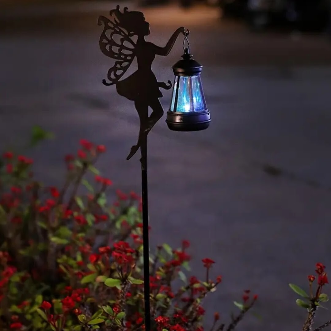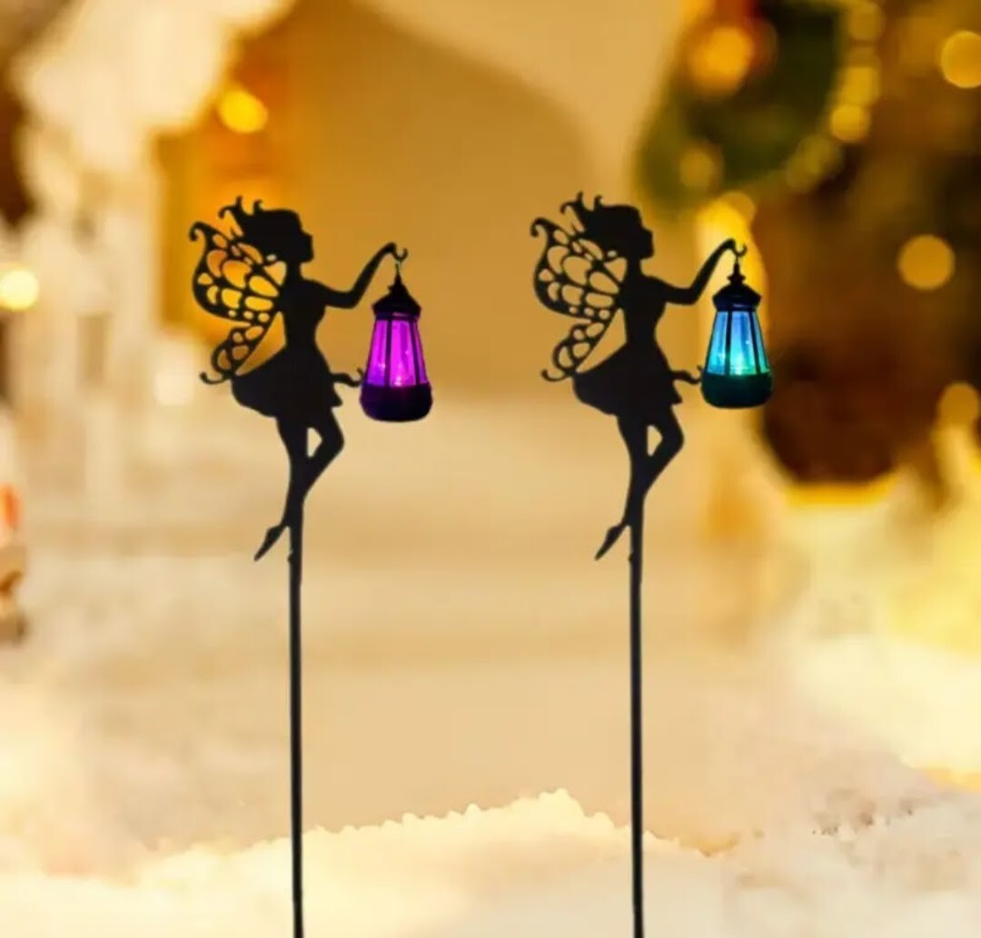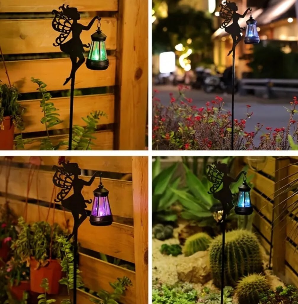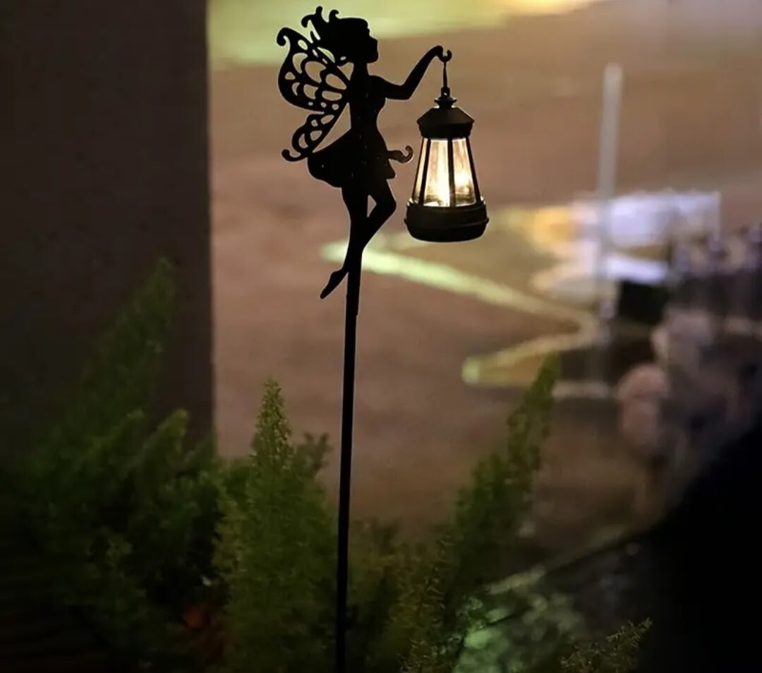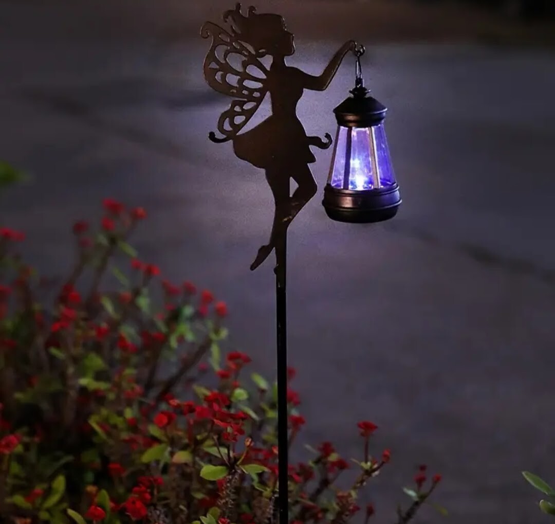 かわいい妖精さんモチーフのアイアン製スタンド付きソーラーライトです