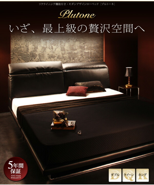 リクライニング機能付き・モダンデザインローベッド プレミアムポケットコイル マットレス付き キング(K×1)