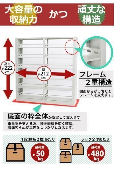 | 商品名 | 送料無料 新品 白 ホワイト スチール製 両面オープン書庫 W212×D45×H222 重量ラック スチールラック 重量 メタルラック メタルシェルフ スチール棚 スチール 倉庫 書庫 本棚 書棚 ブックシェルフ キャビネット 大型 両面 sy05whhoujin |
