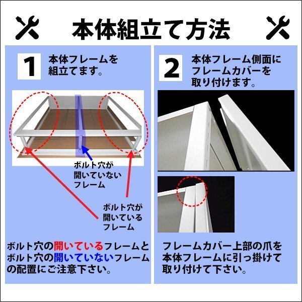 | 商品紹介 | ◇◇スチール製 両面オープン書庫◇◇ ◇頑丈なスチール製の両面オープン書庫です。 ◇資料を大量に保管出来るので仕事場でも大活躍! ◇フレーム2重構造でしっかりとした安定感。 ◇底面枠全体が接地するのでぐらつきません。 ◇錆びにくいのでお手入れも簡単です。 ◇素材:スチール ◇耐荷重:約25kg /(棚板1枚) 約480kg /(ラック全体) ◇重量:約103kg ※こちらの商品は、組立て式です。 (プラスドライバーとスパナ(10mm、12mm、14mm)をご用意下さい。) |