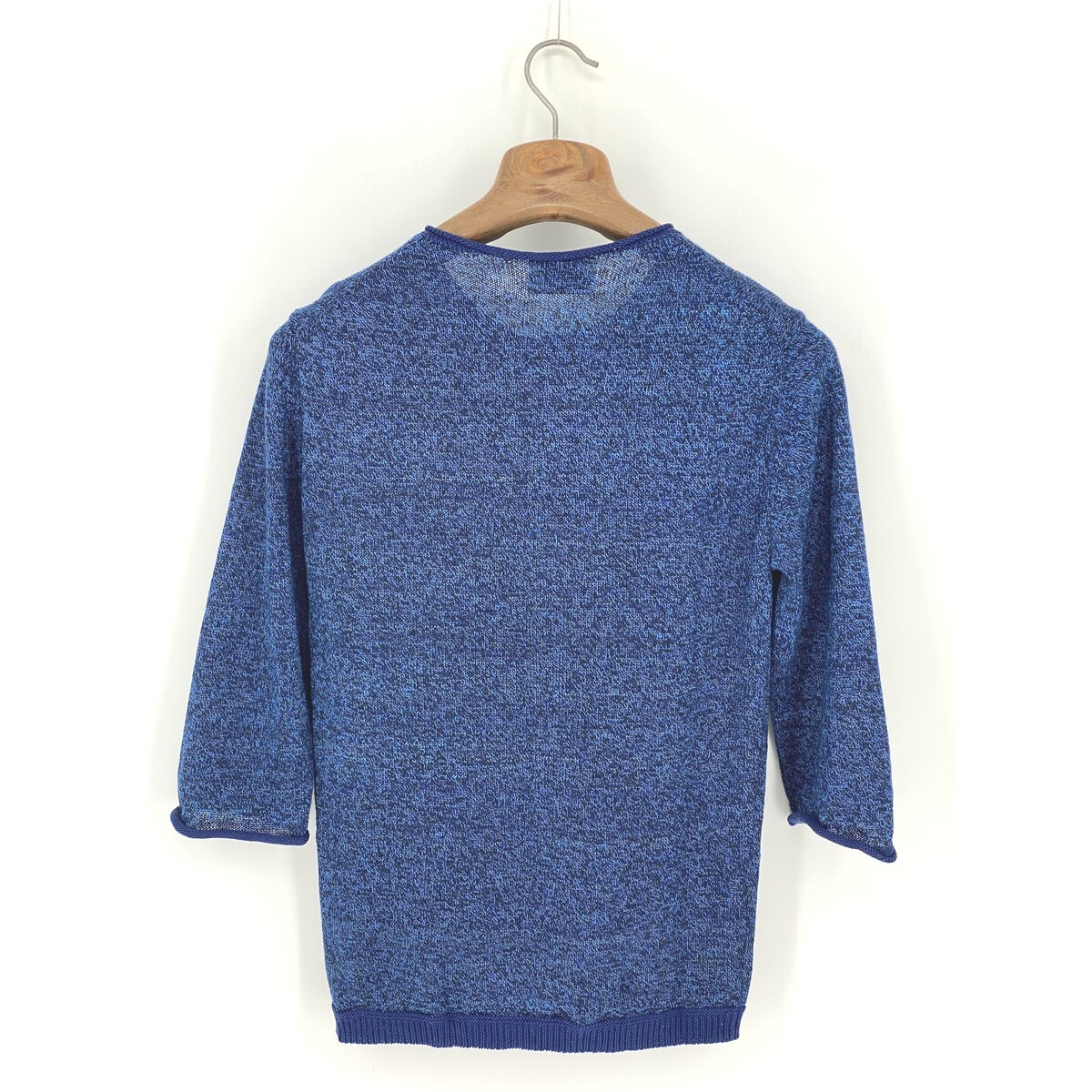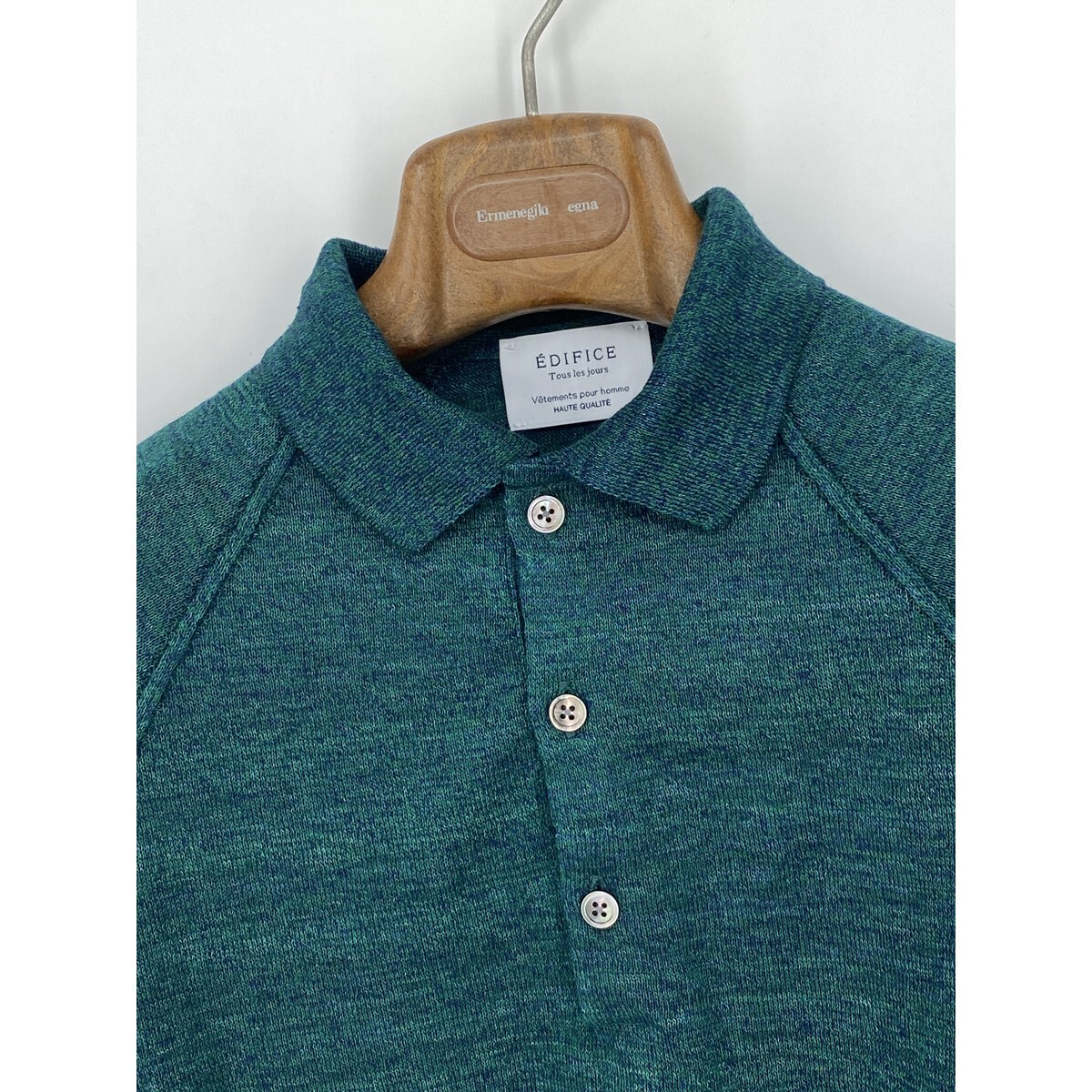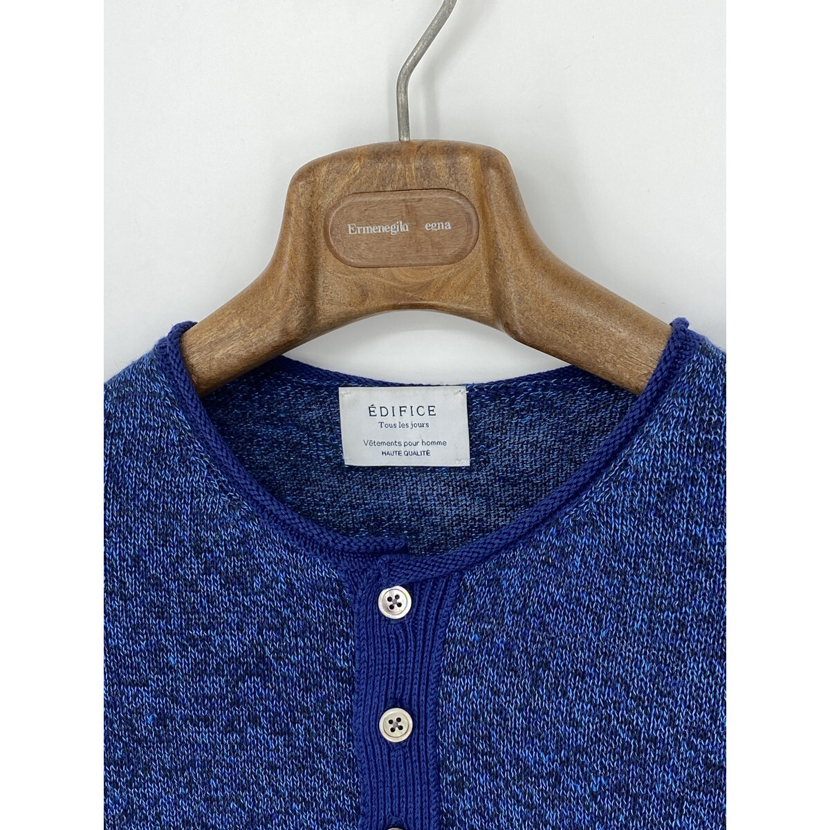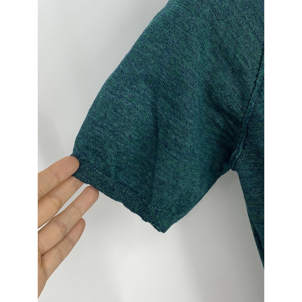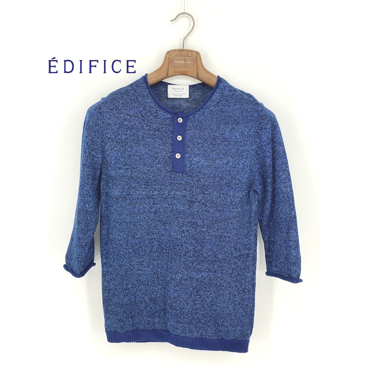 B0578/ 2枚セット 極美品 EDIFICE エディフィス リネン100% ヘンリーネック 七分袖 半袖 ニット リブ セーター 44 S程 青 緑 メンズ