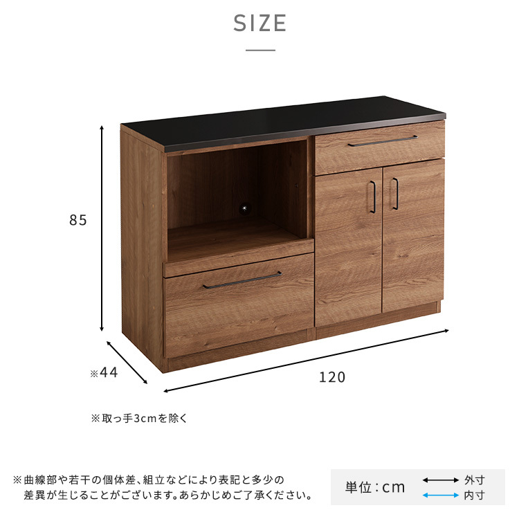 日本製 特殊鋼板を使ったキッチンカウンター 120cm オープン収納+扉収納!