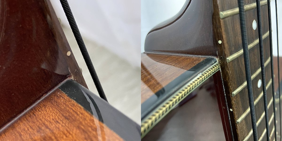 | ◆外観◆ ・★キズ、汚れ、使用感があります。 ・★キズ、サビがあります。 ・★ネックに若干の塗装割れ、隙間があります。 ・★ケースの内部から異臭がします。 ・★写真で撮りきれていないキズや汚れも(数箇所ほど)ございますのでご了承ください。 |