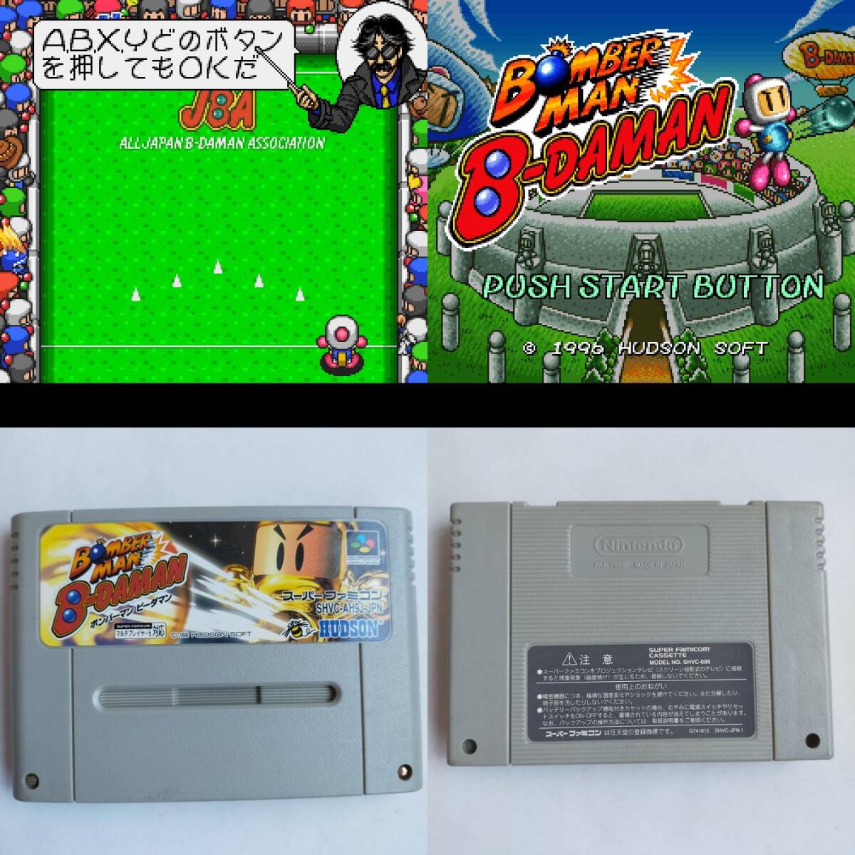 【English】 'Bomberman B-Daman' is a classic action-puzzle game for the Super Famicom. Featuring the B-Daman characters, players engage in explosive bomb battles full of strategy and fun. With each level, your character powers up, creating exciting challenges. The game features diverse stages and clever traps, with tense bomb-placing tactics. The multiplayer mode makes it even more thrilling, perfect for competitive fun with friends!