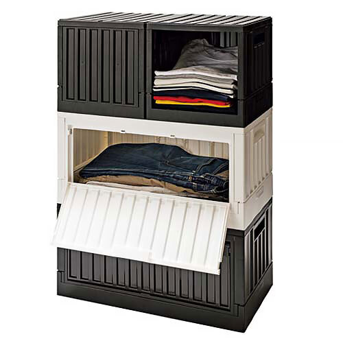 積み上げができる収納ボックスは数あれど、このコンテナボックスの最大の特徴は本体の横から出し入れできるってこと!