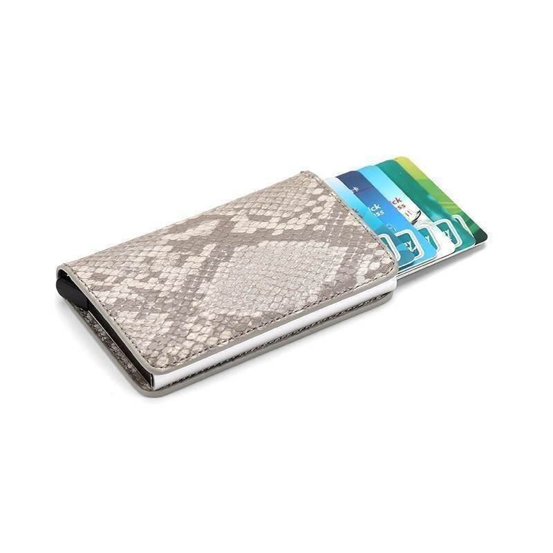 送料0円 カードケース 002 [ヘビ柄白] スキミング防止 RFID マネークリップ メンズ レディース 薄型 スライド式 アルミ製 磁気防止