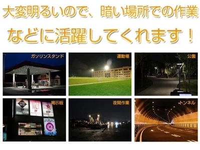 トンネル、掲示板、ガソリンスタンド、夜間作業、現場工事、駐車場、公園、運動場にも様々な場所で活躍します!公園、運動、屋外や現場作業にも便利です!特に、夕暮れ時夜間作業にとても役立ちます! 虫が集まりにくいの も魅力です。