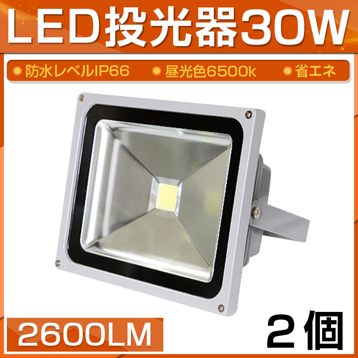 【即納】【2個セット】LED 投光器 30W 300W相当 2600LM 昼光色 6500K 広角130度 防水加工 看板 作業灯 屋外灯 3mコード付き
