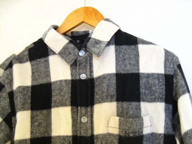 | n゚21 /ヌメロヴェントゥー1 ブロックチェック ウールジャケット ネルシャツ スナップボタン メンズ サイズ : L 白×黒 | ||||||||||||||||||||||||