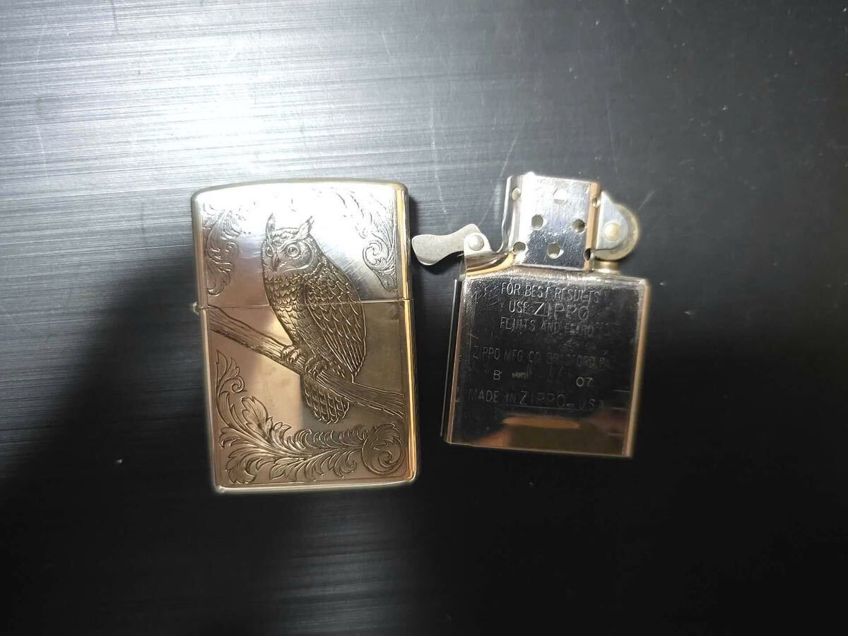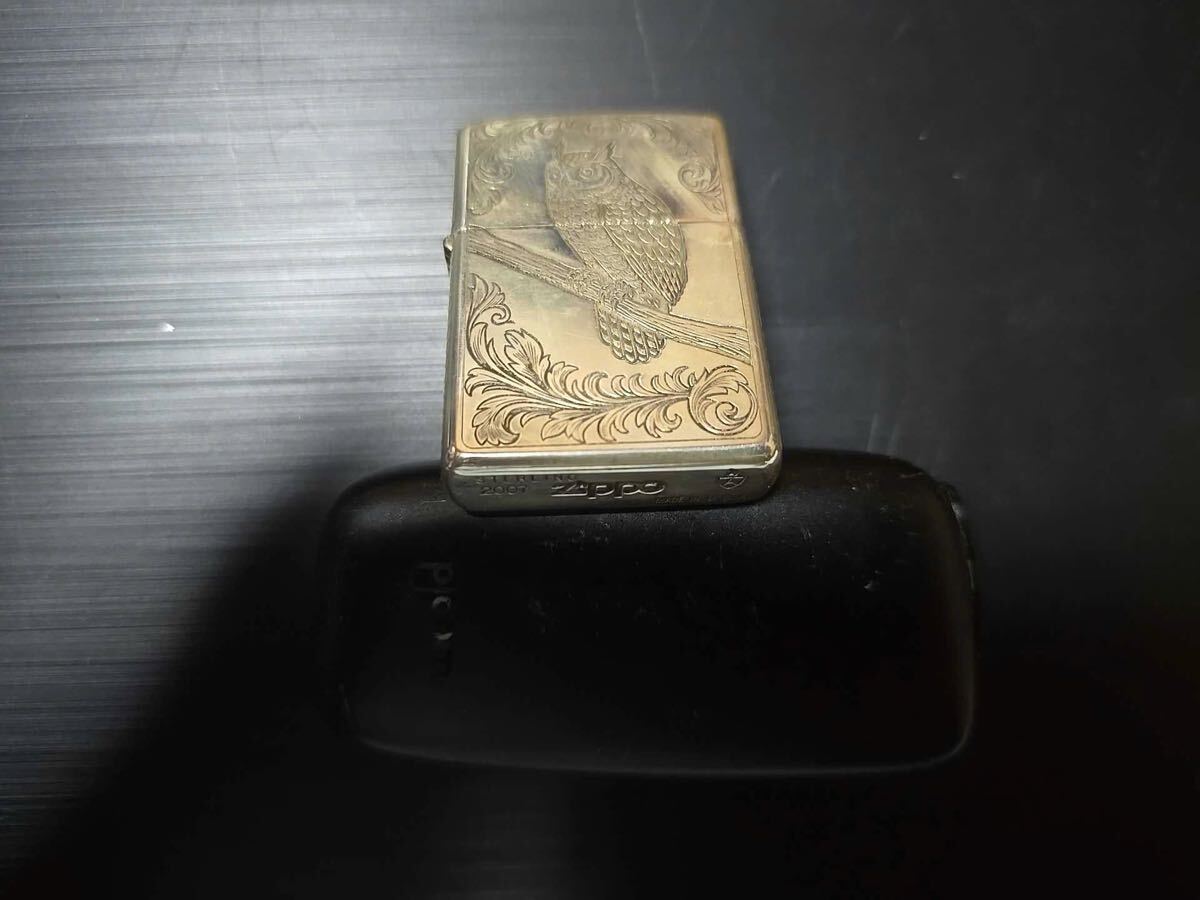 - デザイン: フクロウの彫刻が施された金色のライター