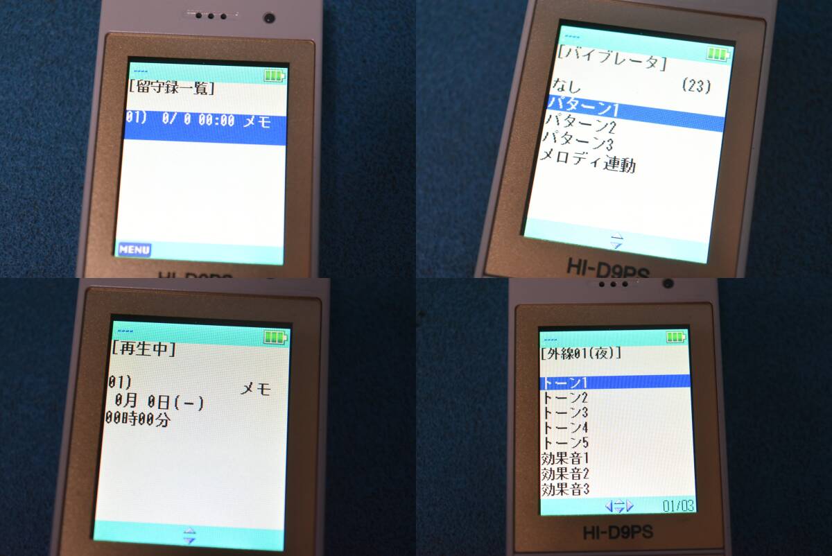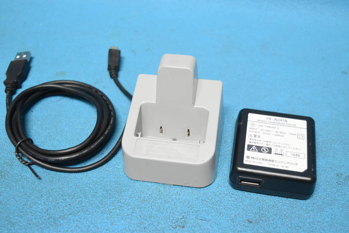 ■メーカー : HITACHI/日立 ■商品名 : MX/CX ラインキー付デジタルコードレス電話機/PHS ■型番 : HI-D9PS ■付属品 ・充電台 【HI-D8CG】 ・ACアダプター 【HI-ADPA】 ・バッテリー 【HI-D6 BT】 ・充電器用ケーブル(USB) ※写真に写っている物で全てです。 ■主な特徴/仕様 ◎PHSの機動性と多機能電話機の操作性でコミュニケーションがよりスムーズに。 ◎8個のラインキーに最大16の機能を登録可能 ◎ラインキー名称のディスプレイ表示で、PHSがさらに使いやすく ◎ラインキーに登録した名称をディスプレイに表示可能 ◎明るく見やすい2インチのカラー液晶ディスプレイ ○ラインキーボタン ○連続通話:約5時間、連続待ち受け:約400時間 ○発信履歴(20件)、着信履歴(20件) ○エコ充電機能 ○メロディ着信 ○アンテナサーチ機能 ○電話帳(最大1000番号) ○簡易メール送受信機能 ○予約アラーム(スケジューラ)機 ○留守録(メモ録音)機能 ○セキュリティ機能 ○事業所間ローミング機能 【デジタルコードレス電話機】 ●寸法(幅×奥行き×高さ) 約45×17×128mm(アンテナおよび突起部を含まず) ●質量 約110g(電池パックを含む) ●使用電源 ・専用リチウムイオン電池 ・定格電源3.7V ・定格容量720mAh ●動作温度 非充電:20~85%、充電:0℃~40℃ ●相対湿度範囲 20%~85% ●連続通話時間 約5時間 ●連続待ち受け時間 約400時間 ●充電完了時間 約5時間 【充電器】 ●寸法(幅×奥行き×高さ) 約64×67×62mm(突起部を含まず) ●質量 約60g ●使用電源 専用ACアダプタ AC100V 50/60Hz ●相対湿度範囲 20%~85% ●動作温度 充電:0℃~40℃ ●相対湿度範囲 20~85% ※上記は当方がネットページにて調べた内容の引用となります。 あくまでも参考程度のものとなりますのでご了承ください。 ■対応主装置 ※コードレス接続機(アンテナ)が必要です。 ●HITACHI Integral Aシリーズ ・ET-40iA-ME、ET-40iA2-ME、ET-40iA3-ME ・ET-108iA-ME、ET-108iA2-ME、ET-108iA3-ME ●NAKAYO iAシリーズ ・NYC-iA/M-ME、NYC-iAv2/M-ME、NYC-iAv3/M-ME ・NYC-iA/L-ME、NYC-iAv2/L-ME、NYC-iAv3/L-ME ●HITACHI integral-E ・ET-iE/S-ME ・ET-iE/M-ME ・ET-iE/L-ME ●NAKAYO iEシリーズ ・NYC-iE/S-ME ・NYC-iE/S-ME-SP ・NYC-iE/M-ME ・NYC-iE/L-ME ●HITACHI integral-F ・ET-iFS-ME ・ET-iFM-ME ・ET-iFM-ME-EX ●NAKAYONYC-Si ・NYC-2f-ME ・NYC-2F2-ME ・NYC-iFS-ME ・NYC-iFM-ME ・NYC-iFM-ME-EX ●HITACHI S-integral ・ET-SiS-ME ・ET-SiLA-ME ・ET-SiLB-ME ●NAKAYO Siシリーズ ・NYC-SiS-ME ・NYC-SiLA-ME ・NYC-SiLB-ME ※上記以外の主装置でも収容可能な物がある場合がございます。 詳しくは直接メーカーなどにお問い合わせください。 ■商品状態・動作確認事項 ●簡単な動作確認 ⇒ OK。(下記参照) ・画面確認OK。 ※バックライトも光るのを確認しました。 ・音確認OK。 ※ボタン・着信設定などにて音が鳴るのを確認しました。 ・ボタン確認OK。 ※ボタンが反応するのを確認しました。 ・バイブレーション確認OK。 ※着信設定などにて振動するのを確認しました。 ・メモ録音・再生確認OK。 ※録音(受話マイク)、再生(受話スピーカー)が出来るのを確認しました。 ・充電器確認OK。 ※電池残量が無い状態から、メモリがフルになるのを確認いたしました。 ※専門知識・動作環境が無い為、簡単な動作確認のみとなります。 上記以外の動作確認はしておりませんので、消耗品や不備がある部分、動作確認を行っていない部分につきましてはノークレームにてお願い致します。 |