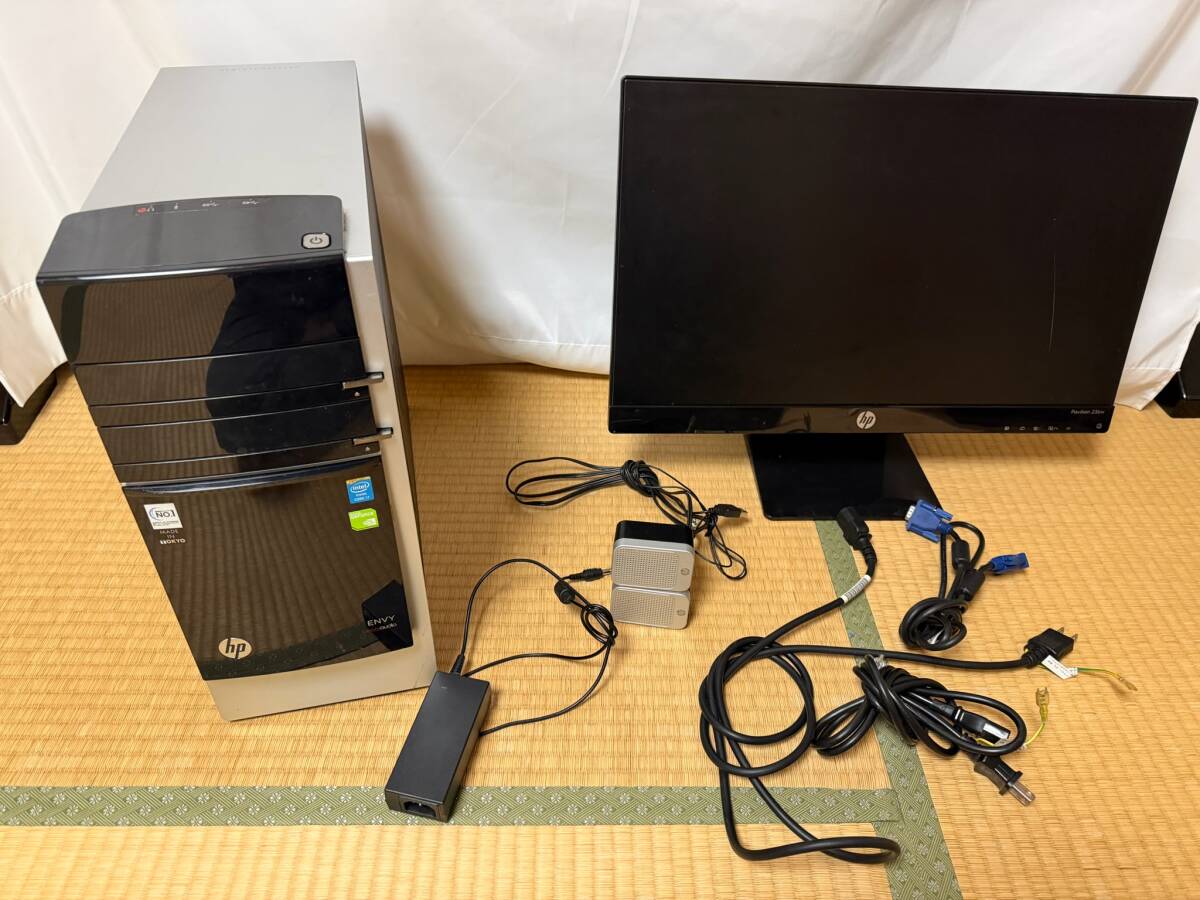 HP ENVY 700 PC 700-260jp Intel Corei7-4770 CPU メモリ16GB NVIDIA GeForce GTX760 1TB HDD ゲーミングパソコンセット 中古中古品です。OSはもともとWindows8だったものをWindows10にアップグレードしたもので、一通り動作は問題ありません。部品取り等にもお使いください。モニターセット売りになります。
