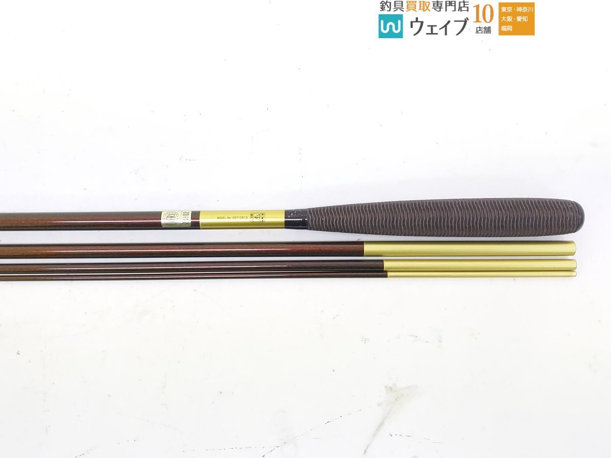 | 説明 | ブランクスにややスレキズがあります。 にぎり、玉口は比較的キレイな状態です。 使用感はややありますが全体的には良い状態です。 全長:13尺 継数:4本 仕舞(実測):約109cm ※口栓含む 自重(実測):93g 商品コード:06110813 ※付属品を含め写真に写っているものが全てとなります。状態に関してはランク表または写真を参考にしてください。 |