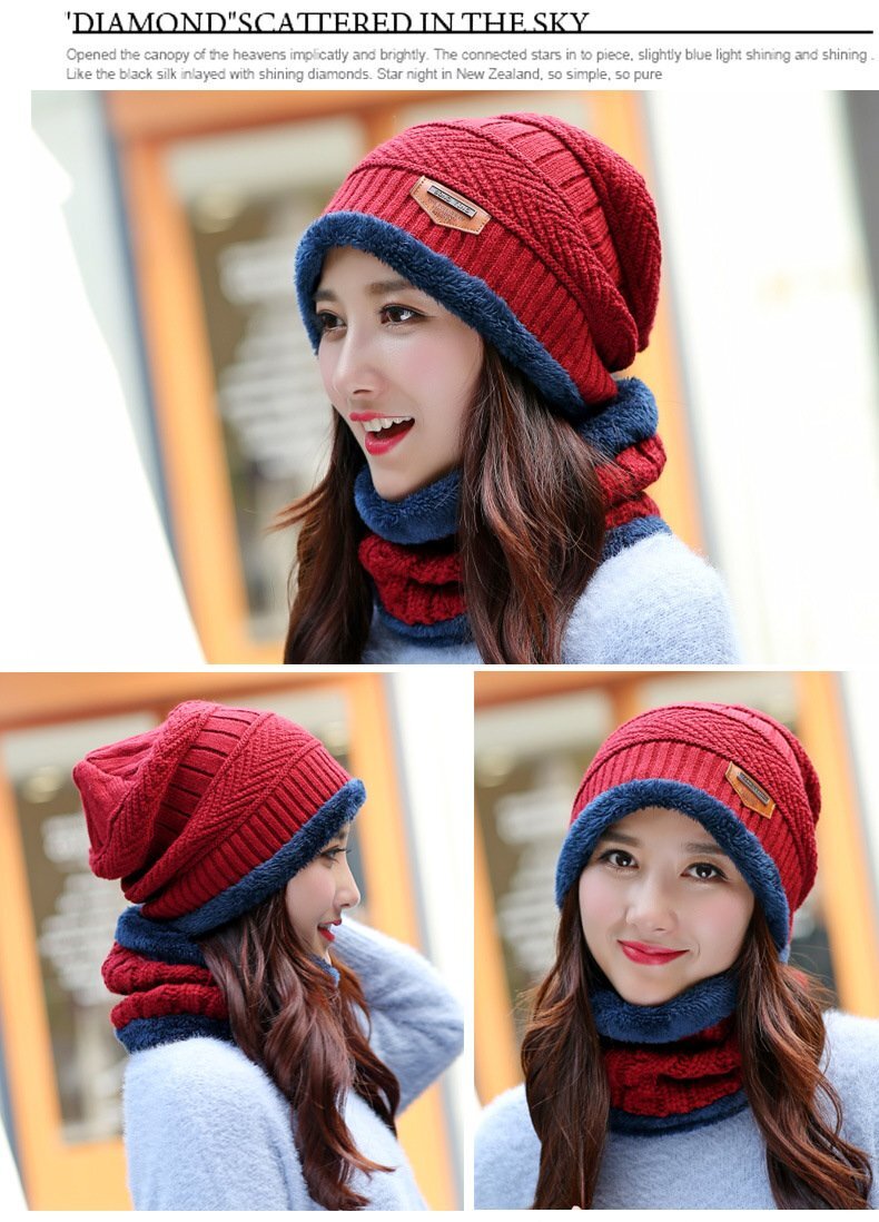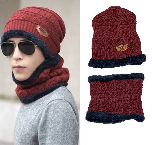 ニット帽+ネックウォーマー レッド 2点セット 裏起毛 メンズ レディース 男女兼用 防寒対策