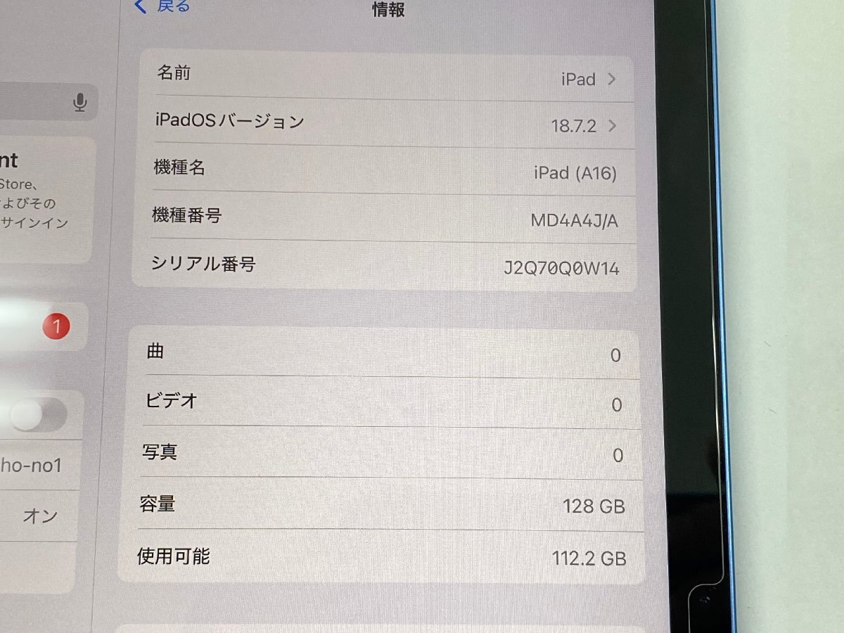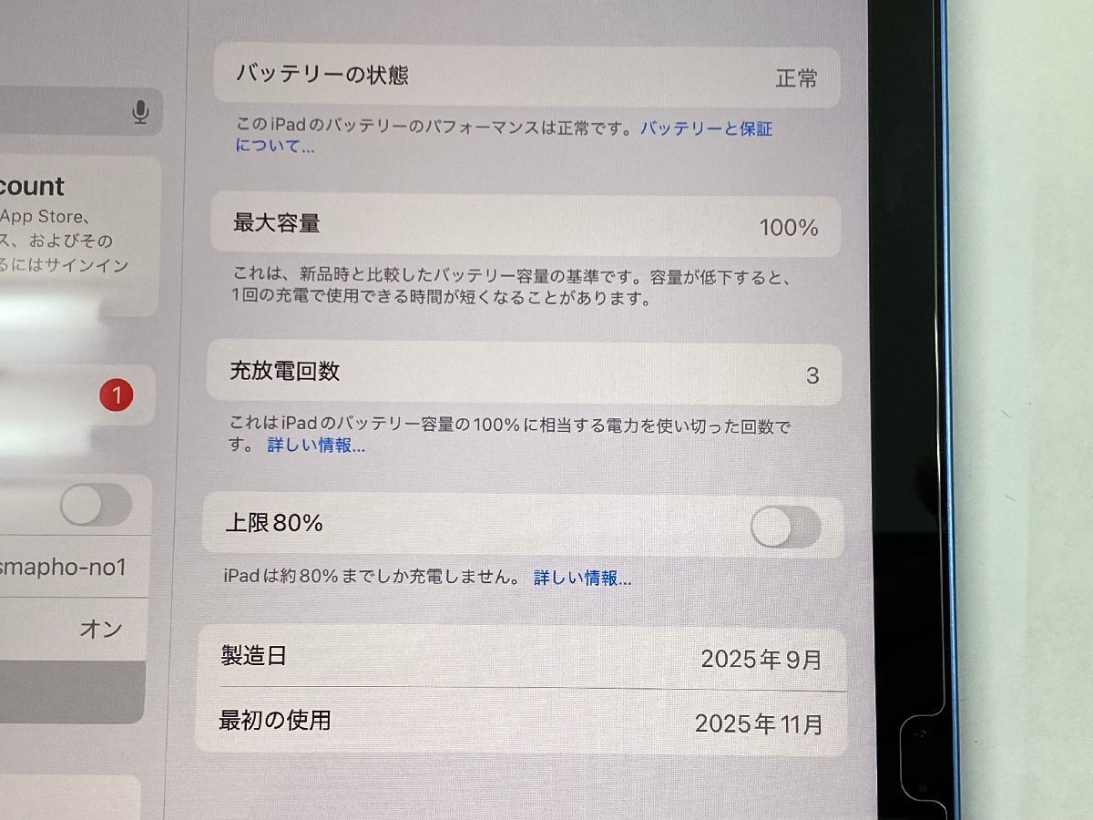 新品同等品 iPad (A16)第11世代 128GB Blue バッテリー:100%(充放電回数3回) 充電器ケーブル付き 管理番号:11-38【安心保証】
