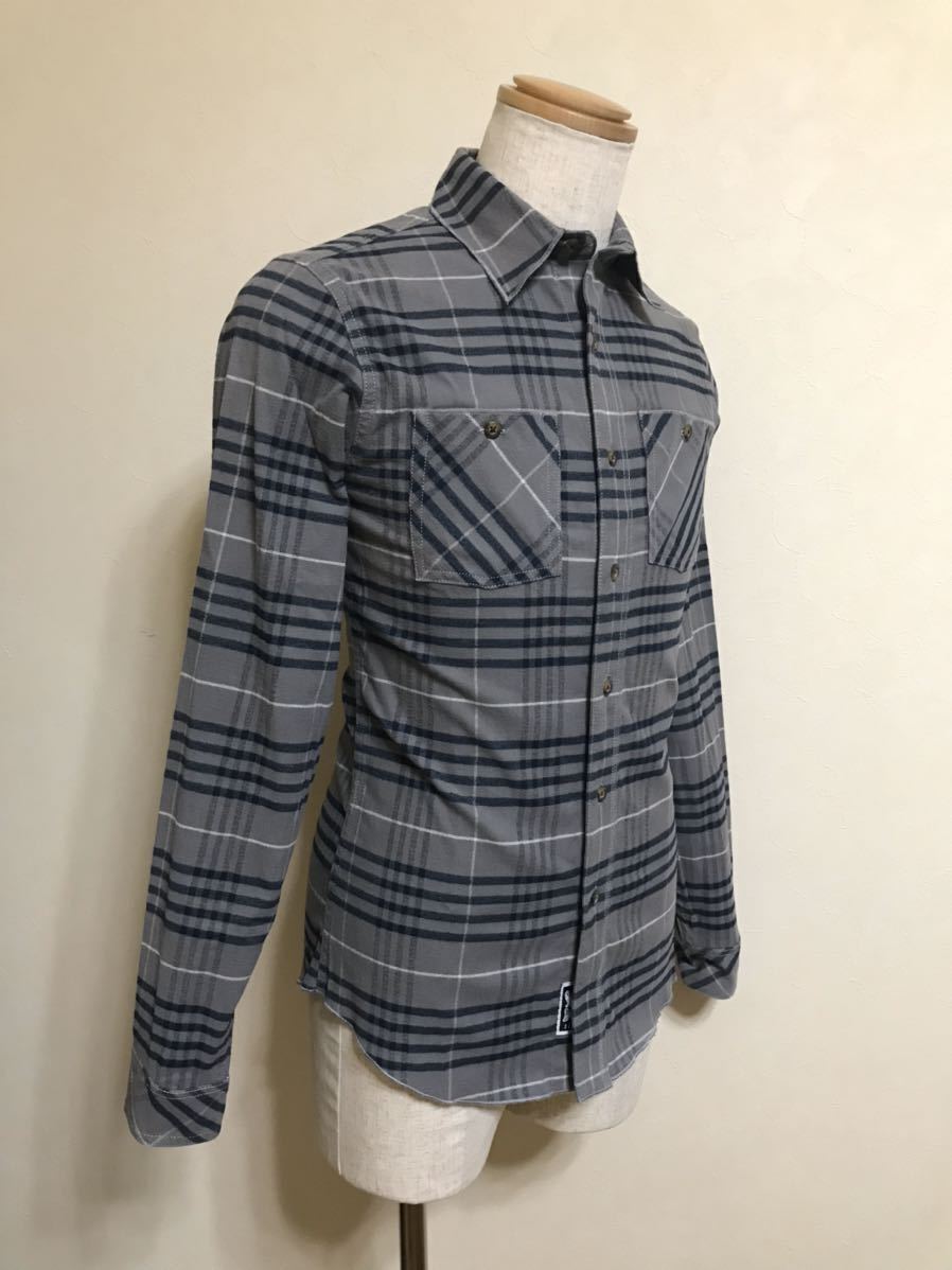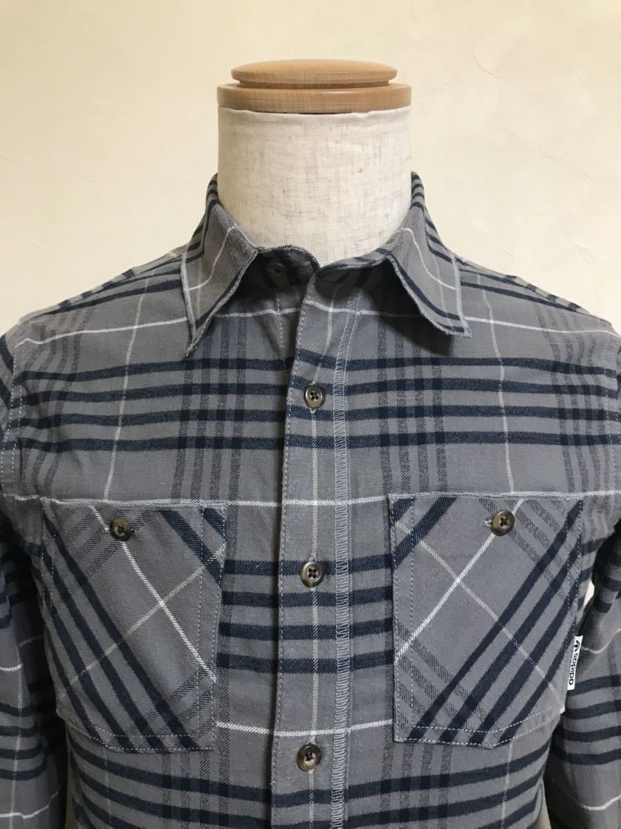 *サイズXS 長袖 チェック柄 グレー 型番:G90735 綿52% ポリエステル48%