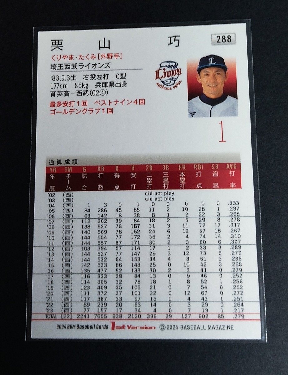 2024年BBM 1st 栗山巧(西武)銀箔サイン入り!No,288。