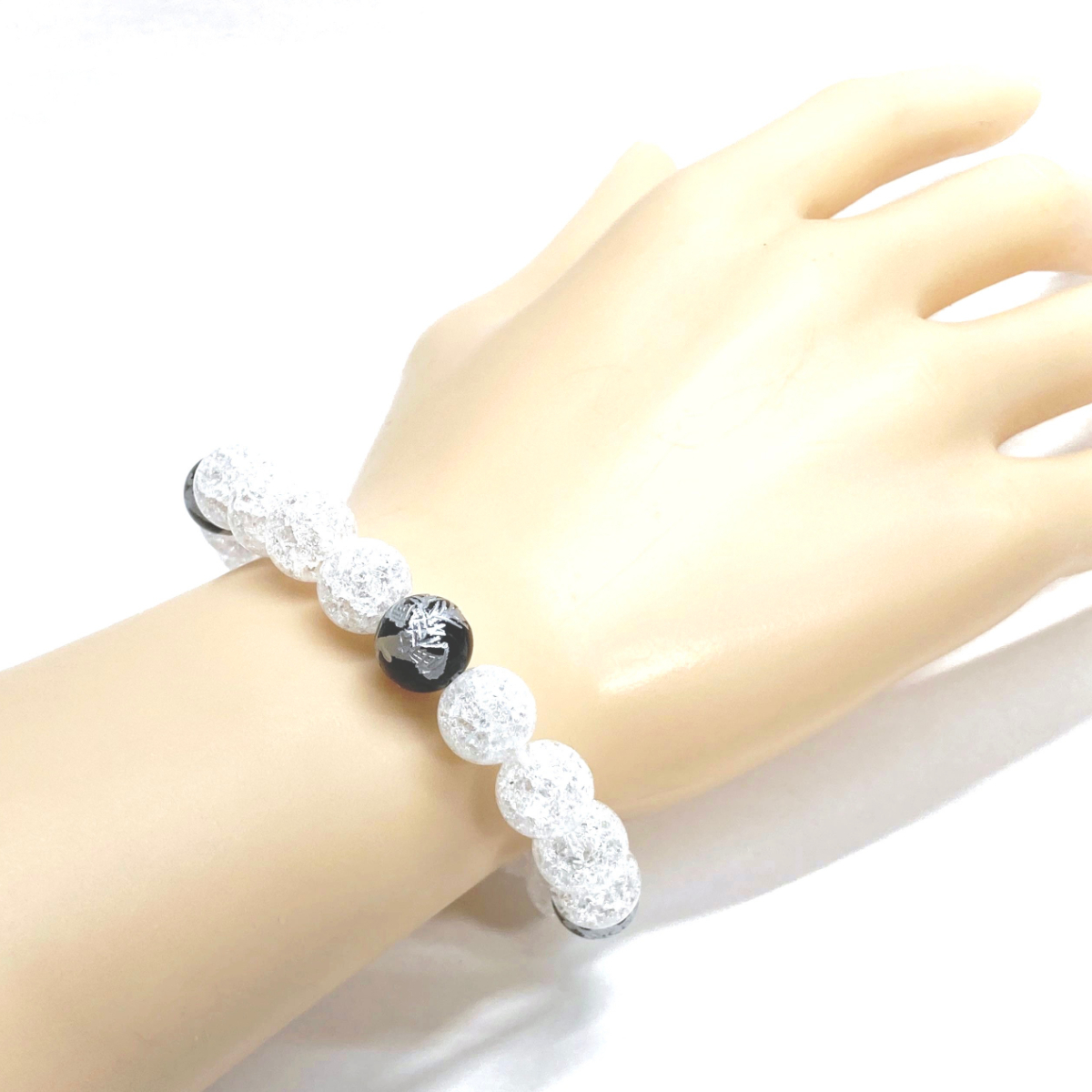 10mm 四神獣銀彫オニキス×クラック水晶 パワーストーン ブレスレット天然石 運気上昇 開運 金運 恋愛運 青龍 白虎 玄武 朱雀 ☆