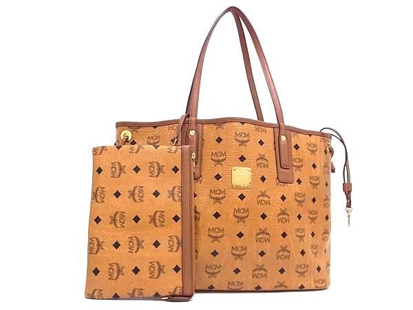 1円 ■極美品■ MCM エムシーエム モノグラム ヴィセトス柄 レザー キャンバス リバーシブル レオパード トートバッグ ブラウン系 FN8539