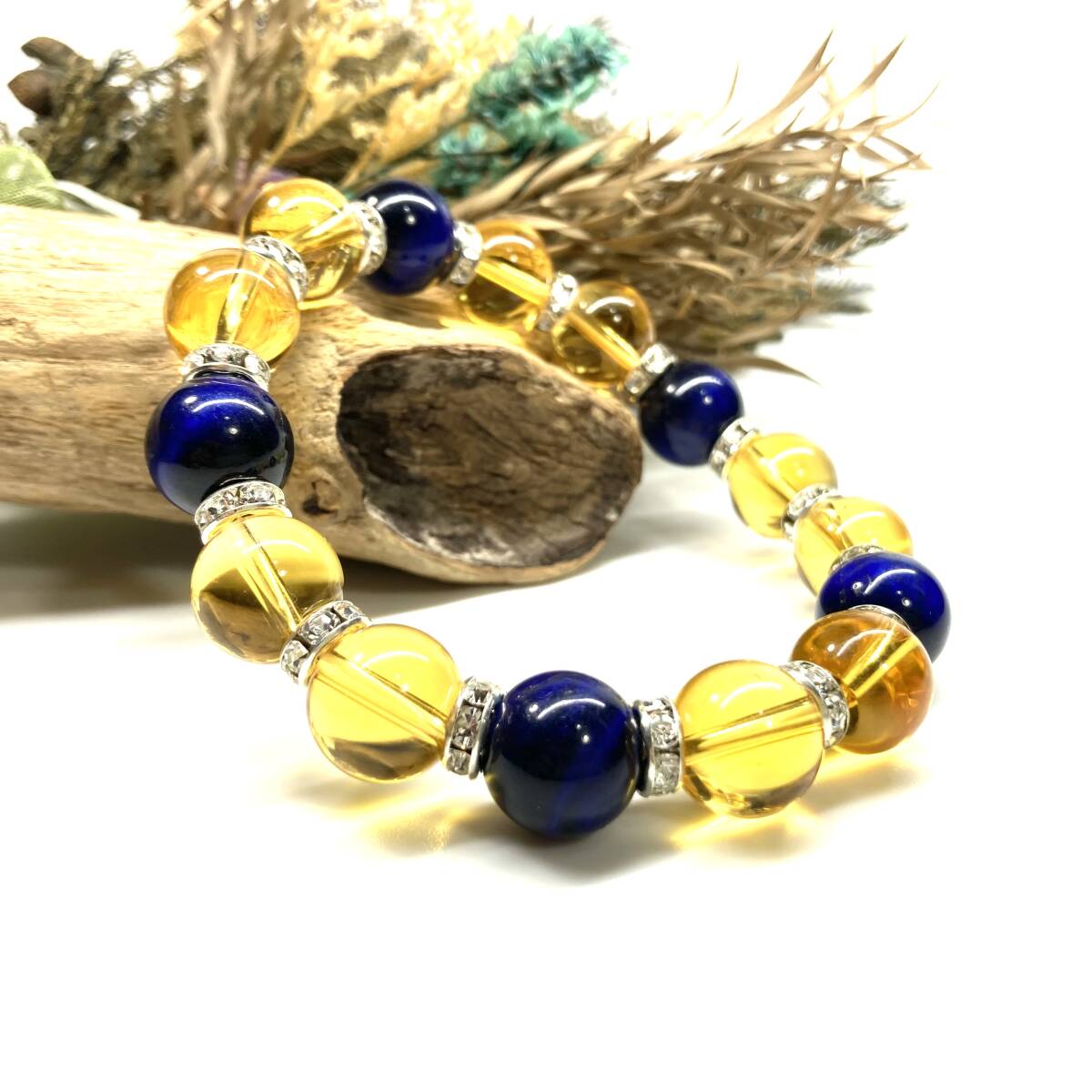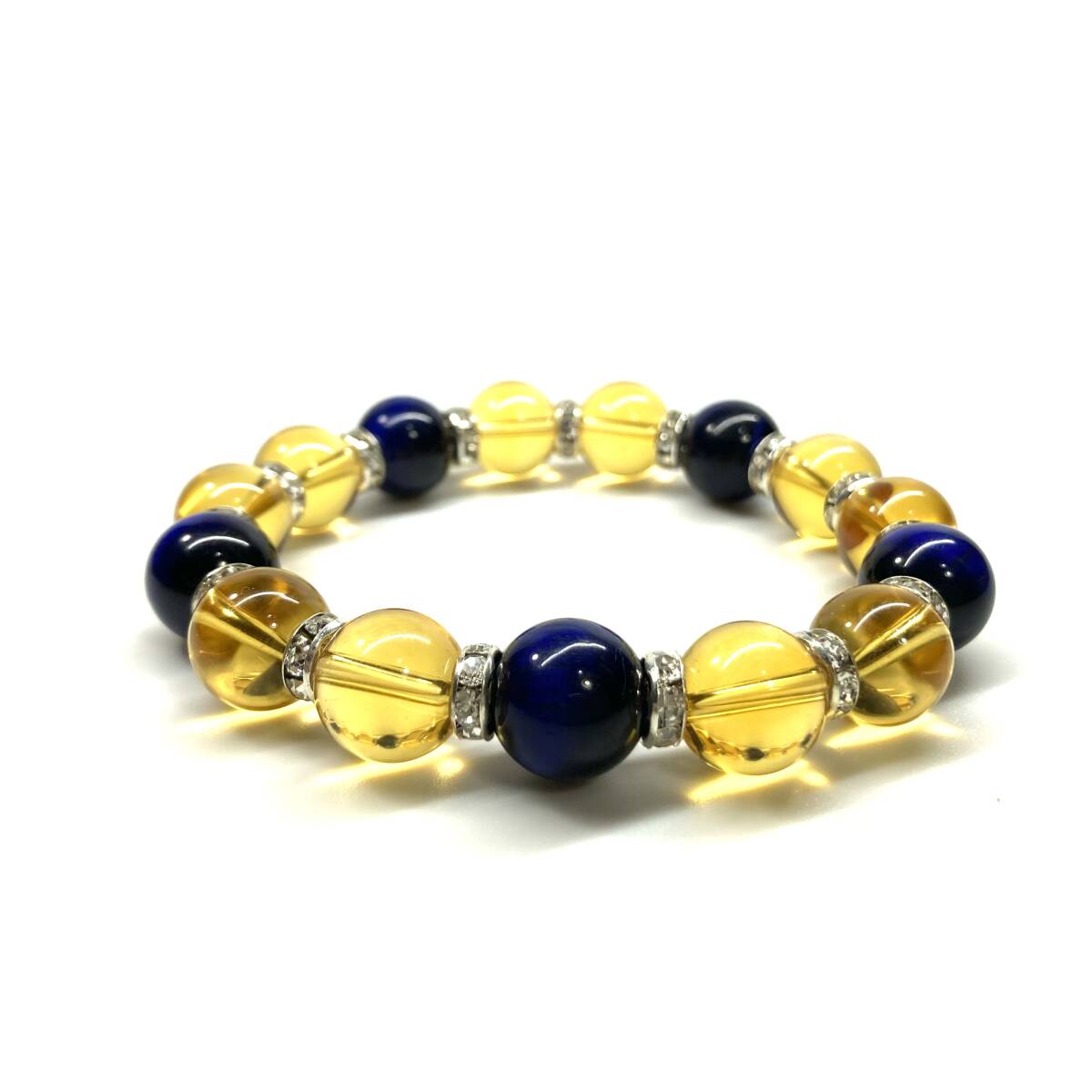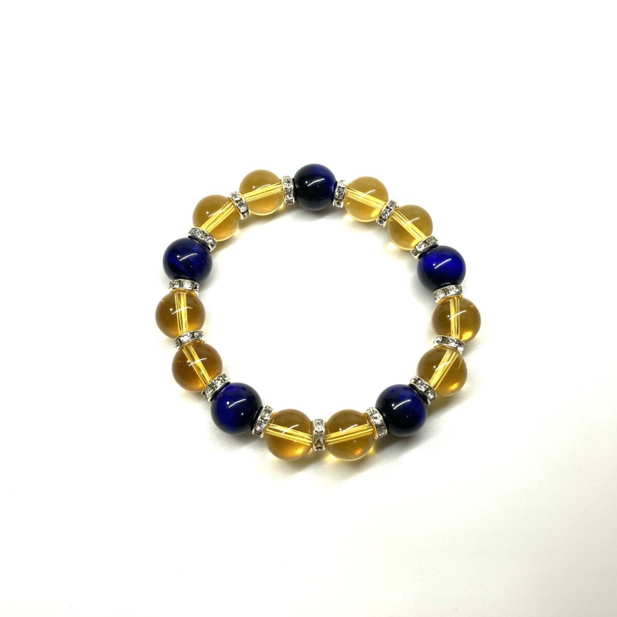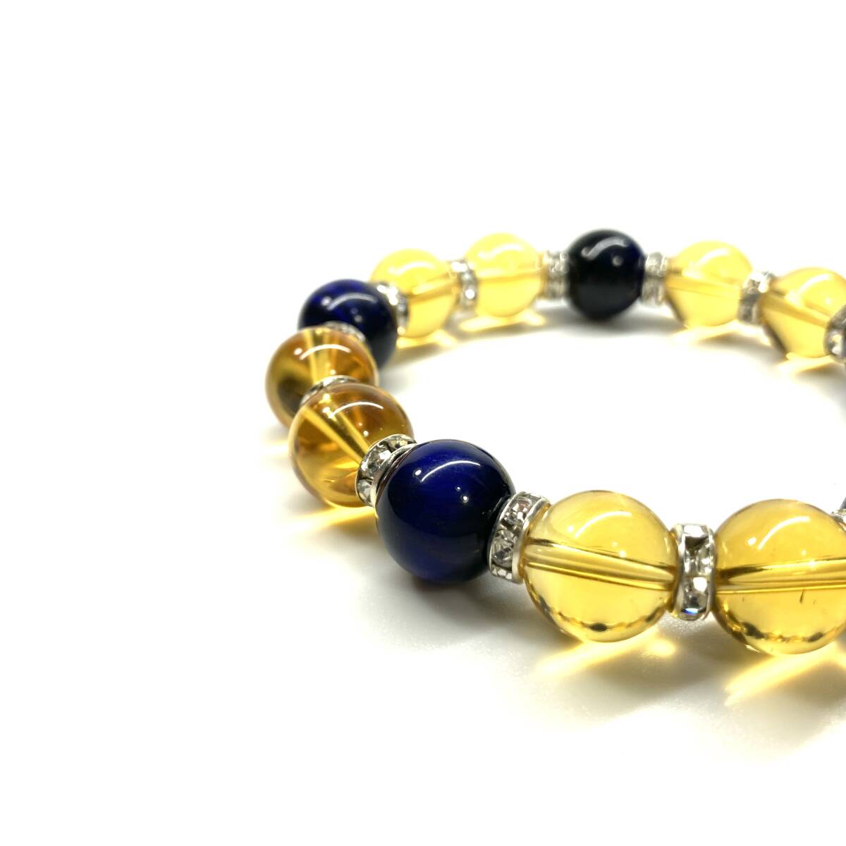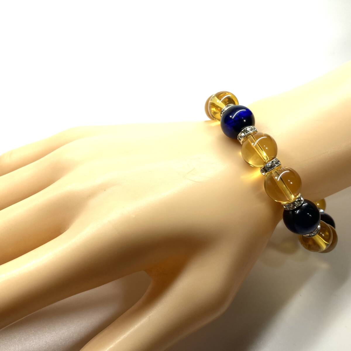 こちらは、ブルータイガーアイとシトリンを組み合わせたパワーストーンブレスレットです。間にはロンデルを挟み高級感あるデザインに仕上げております。石大きさは12mm玉を使用して内周約18cmです。気になる方は是非この機会にどうぞ。