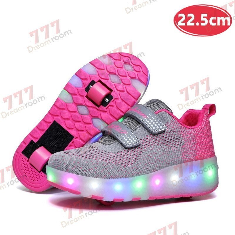 1スタ☆光る☆LED ライトアップスニーカー&ローラーシューズ 一体型 【K-375ピンク 22.5cm】夜間 スケート靴 反射材 ジョギング 自転車