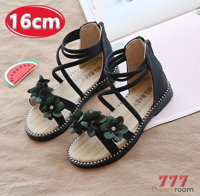 kids フラワー 編み上げ サンダル 【ブラック 16cm】 韓国子供服 キッズ ビーチサンダル フォーマル 女の子
