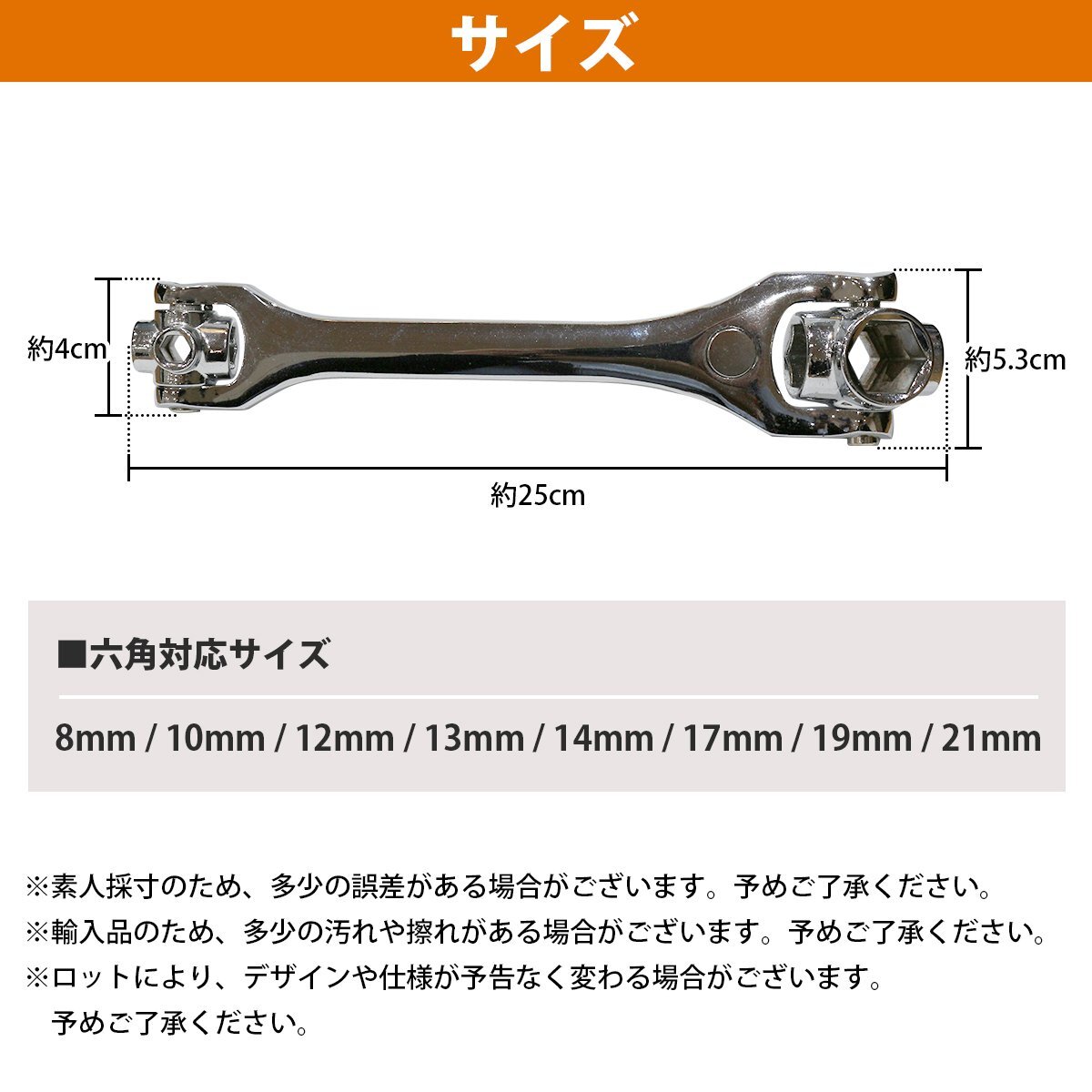 回転式 8サイズ対応 ステンレス 可変レンチ 8/10/12/13/14/17/19/21mm 錆びない マルチ 首振り 『タイプA』