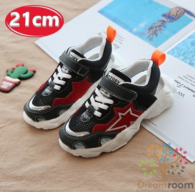 1スタ☆kids 滑り止め付き!メッシュ スニーカーサンダル 【ブラック 21cm】 韓国子供服 キッズ ビーチサンダル 子供用 女の子