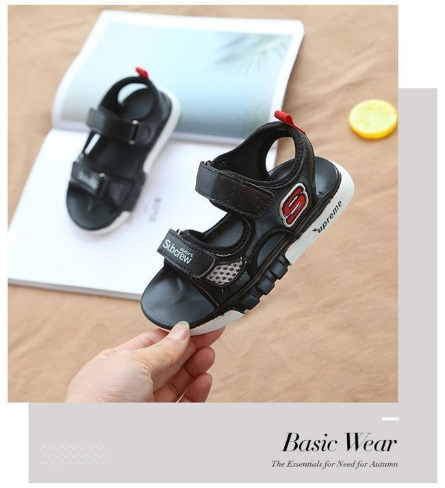 kids 滑り止め付き!ポイントロゴ スポーティー サンダル 【ブラック 20cm】 韓国子供服 キッズ ビーチサンダル 子供用 女の子