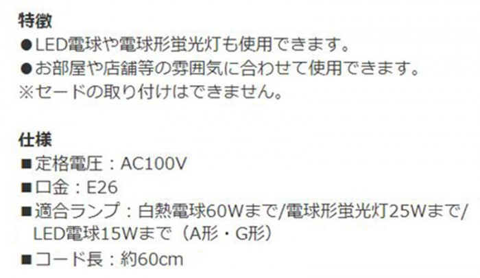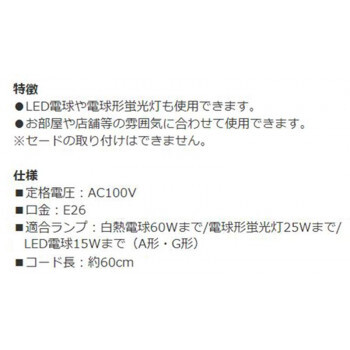 | お部屋や店舗等の雰囲気に合わせて使用できます。※セードの取り付けはできません。 |