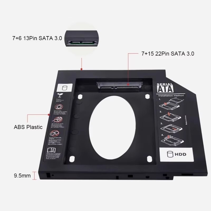 ノートPCの光学ドライブベイにHDDやSSDをマウントするためのキャディ(アダプタ)です。