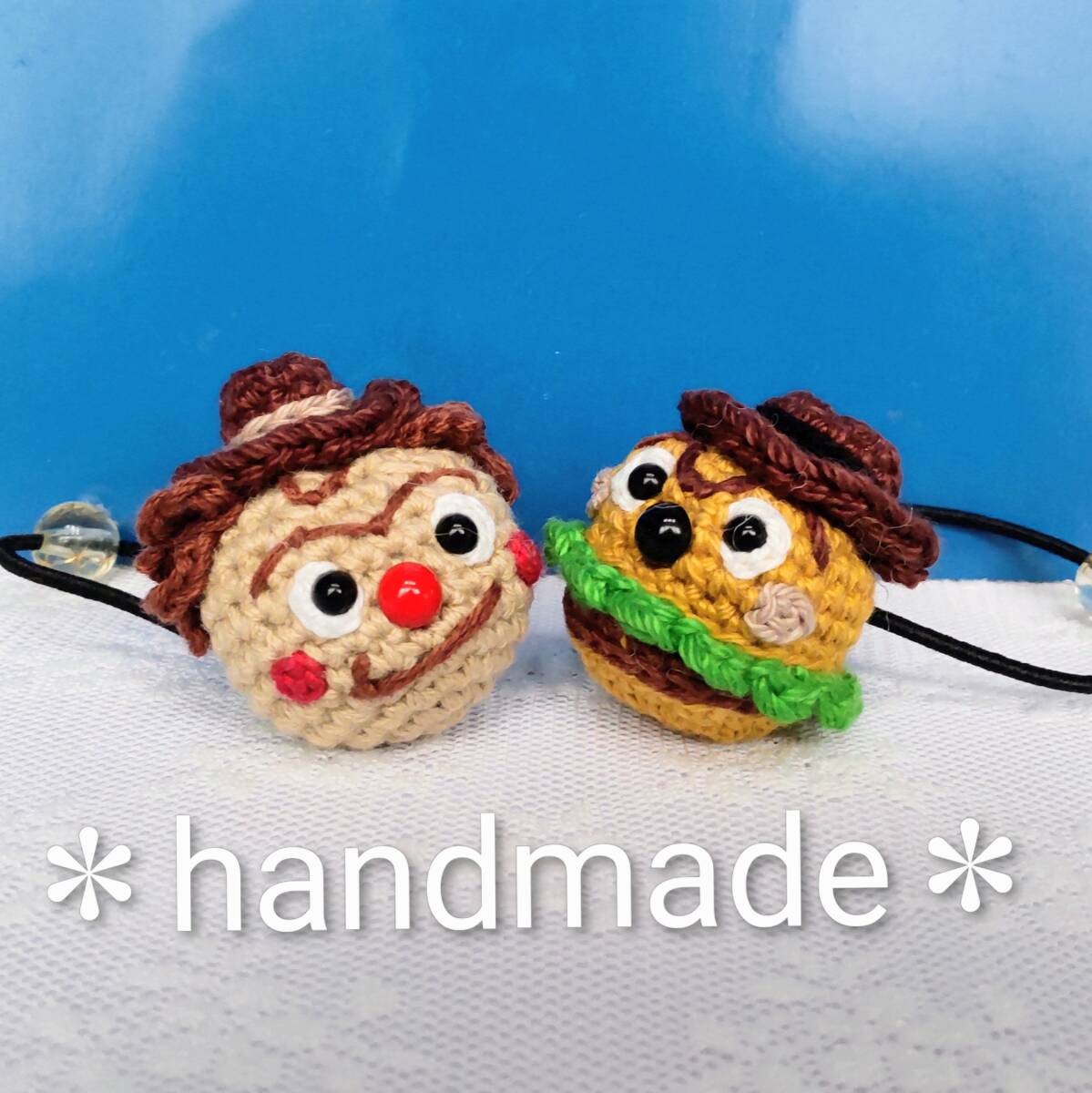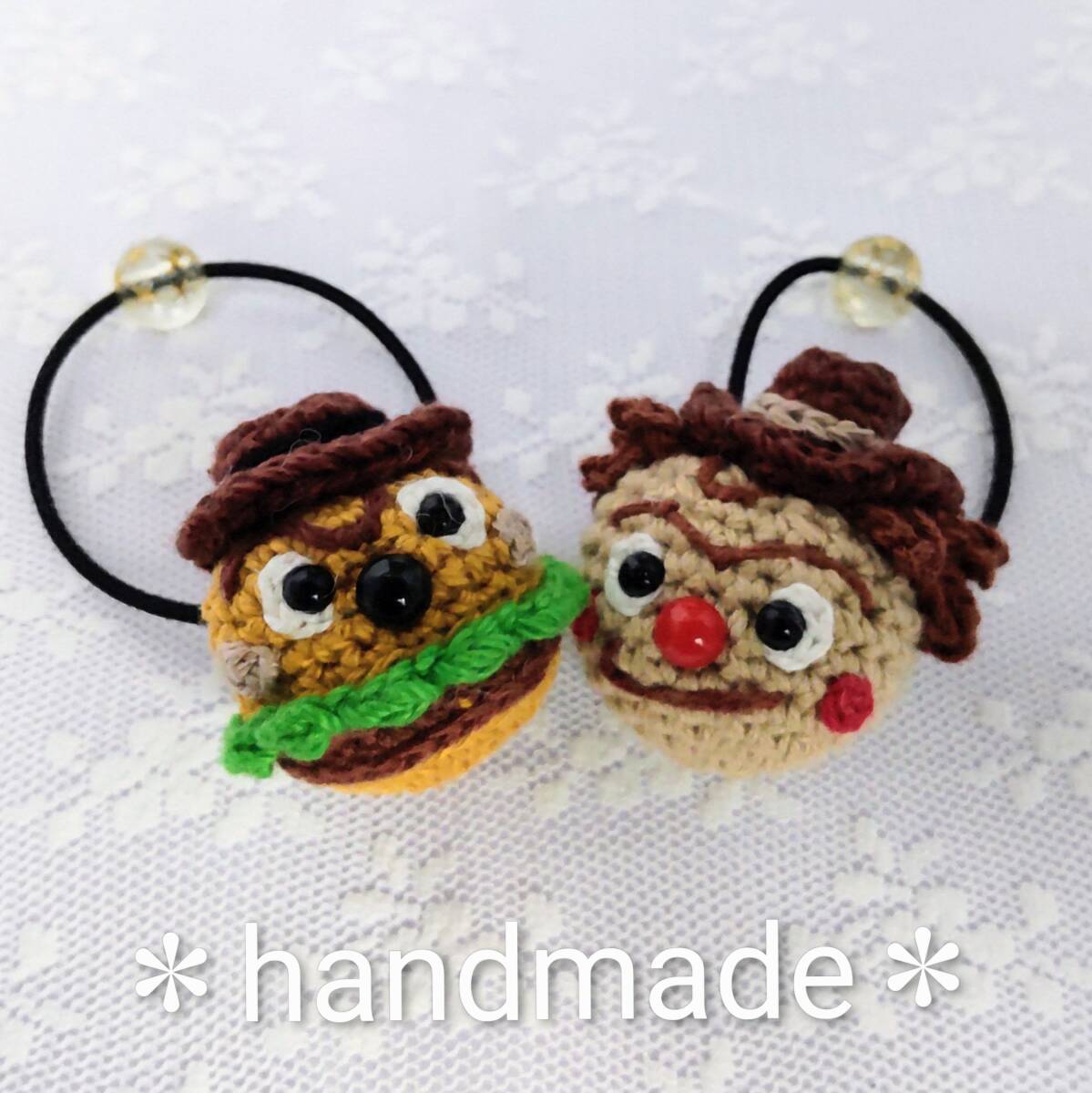 ハンドメイドあみぐるみ★ヘアゴム2個組★ハンバーガーキッド&やきそばパンマン風