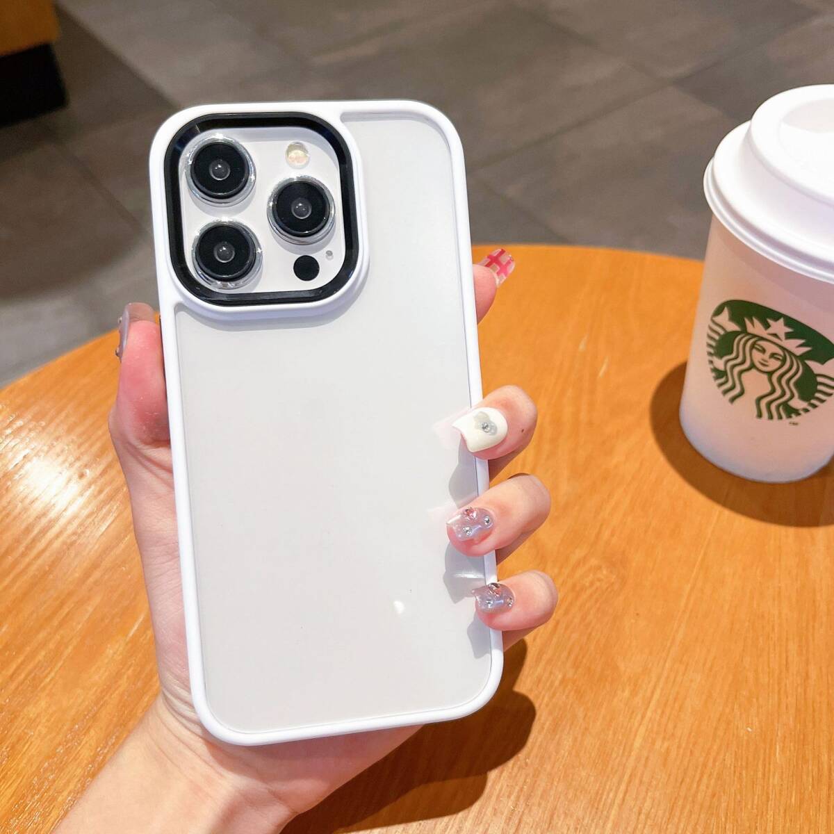 iPhone 11 ケース クリア 透明 アイフォン iPhone11 ケース カバー 2色 配色 薄型 可愛い レディース 背面ケース ハードケース,白