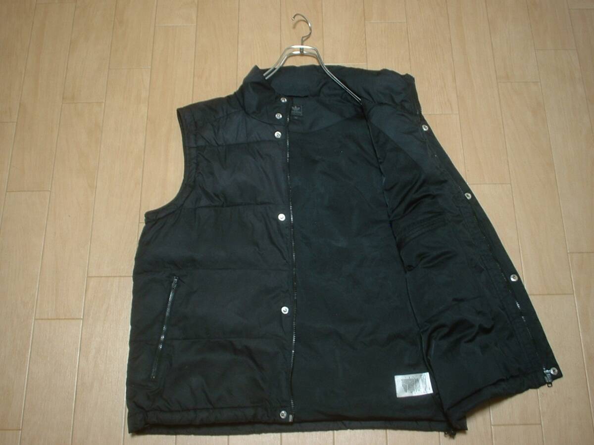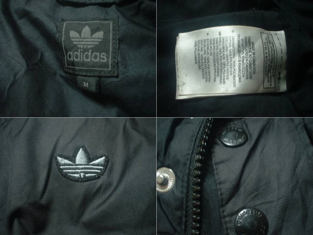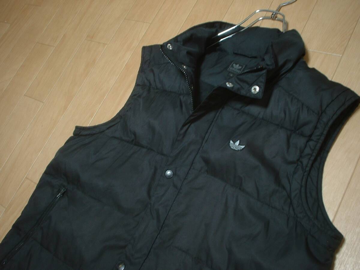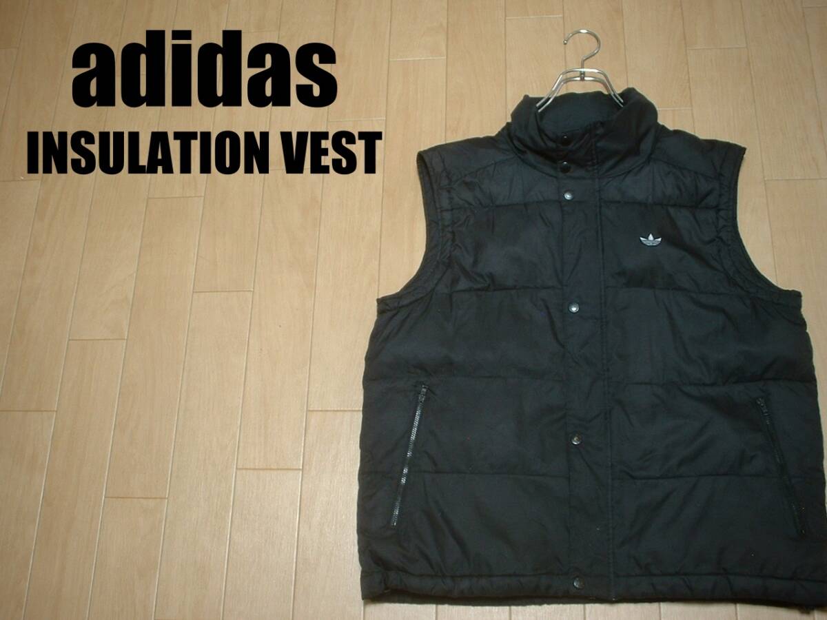 adidasジップアップ中綿ベストM黒ブラック正規オールドアディダスワンポイントトレフォイル刺繍ジャージトラックパフジャケット