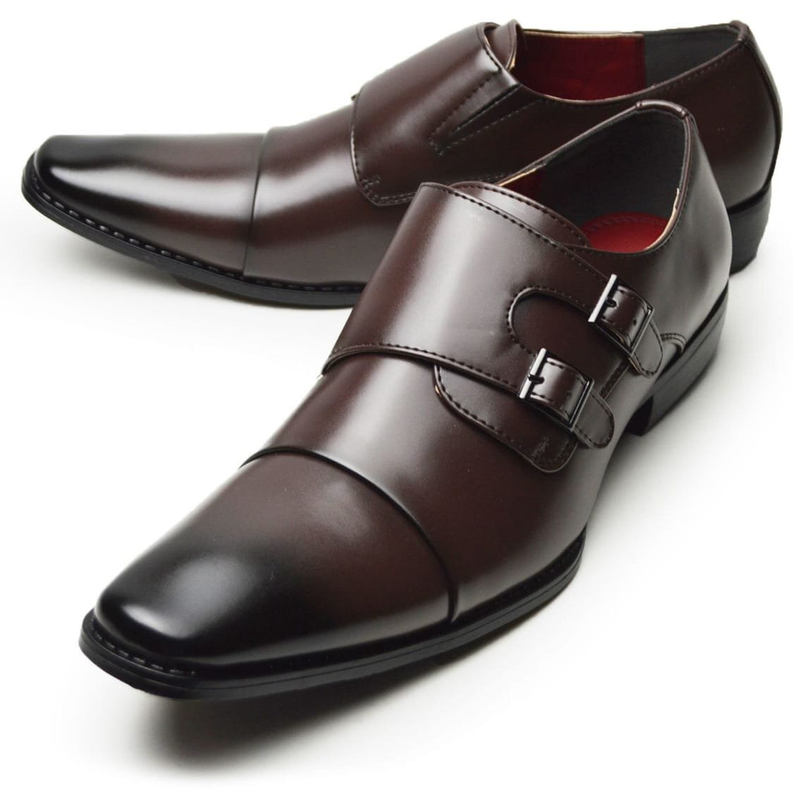ビジネスシューズ メンズ モンクストラップ ストレートチップ ダブルベルト 革靴 イタリアンデザイン オフィス コンフォート 4382