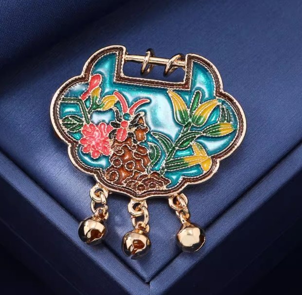 長命錠平安錠ブローチ芙蓉花錦鯉のコサージュは吉祥平安を意味する