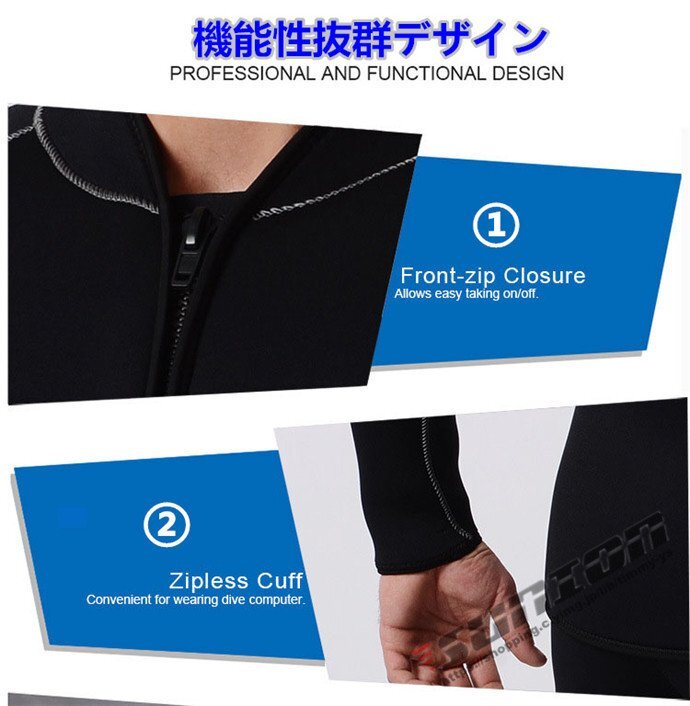 【商品説明】ウェットスーツ メンズ レディース 男女兼用 3mm ダイビング サーフィン バックジップ3mmストレッチネオプレンを使用、 運動性、保温性に優れて、幅広く利用できるオールシーズンワンピースです。人間工学に基づくカッティングでお肌と ピッタリして浸水を有効抑え、体温を守ってくれます。ダイビング、シュノーケル、サーフィン、カヤック、サップフィッシング、パドリング、ジェットスキー、海上作業などに幅広く適用できます。【カラー】ブラック【サイズ】S、M、L、XL、XXL【厚さ】 3mm【材質】ストレッチネオプレーン、両面ナイロン【保管について】海から上がったら、なるべく早めに洗う。熱いお湯はNG、必ず水かぬるま湯で洗う。乾燥は直射日光を避け、細いハンガーは使用しない。しっかりと乾燥したら、なるべく早めに表面へ戻す。