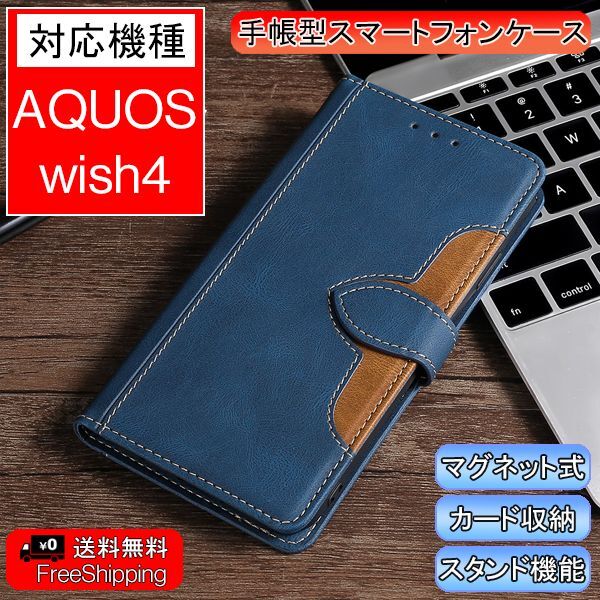 | 商品名 | AQUOS wish4 用 スマホケース アクオス ウィッシュ 手帳型 新品 レザー カード収納 携帯ケース シンプル ネイビー&ブラウン |