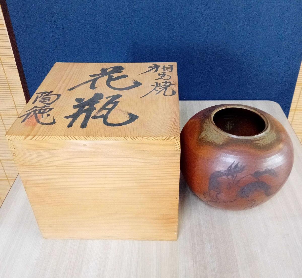 | ▼商品名 | 【陶徳】 大堀相馬焼 花瓶 全高21cm 共箱付き 名産品 [二本松店] |