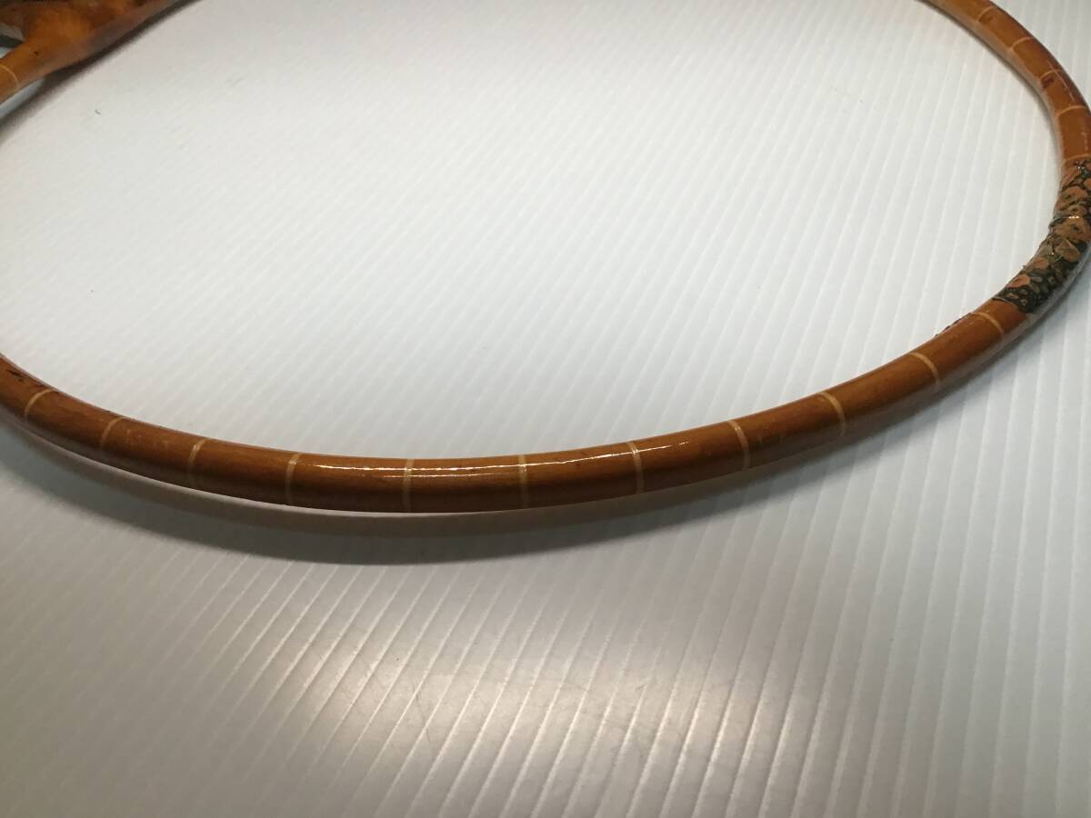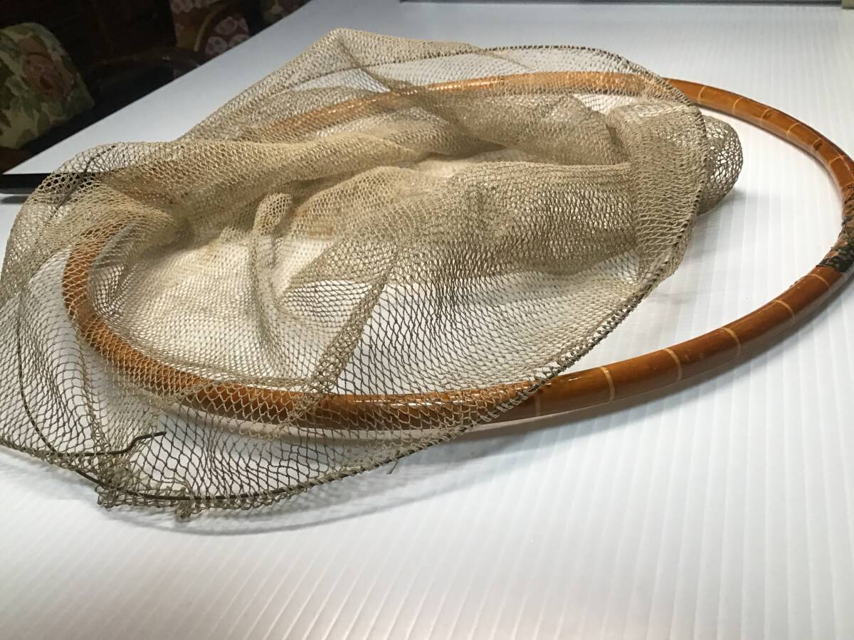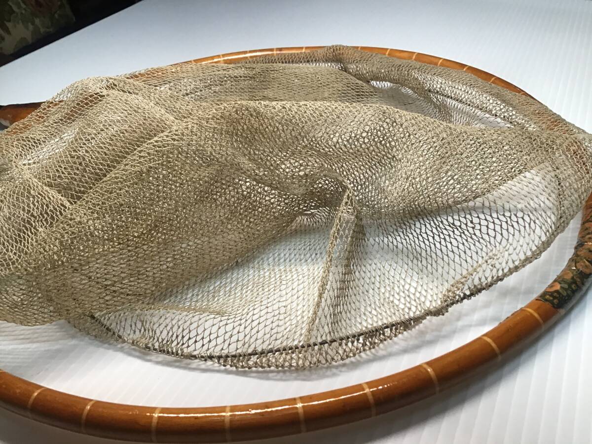 【精魂】の銘ある玉網の枠ですが一部割れがあったので和紙で巻いて漆で固めて修理しました。付いていた網はオマケです。