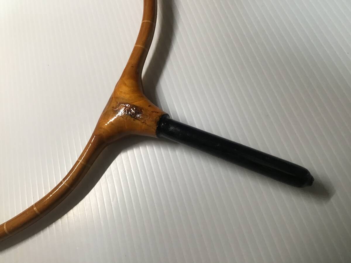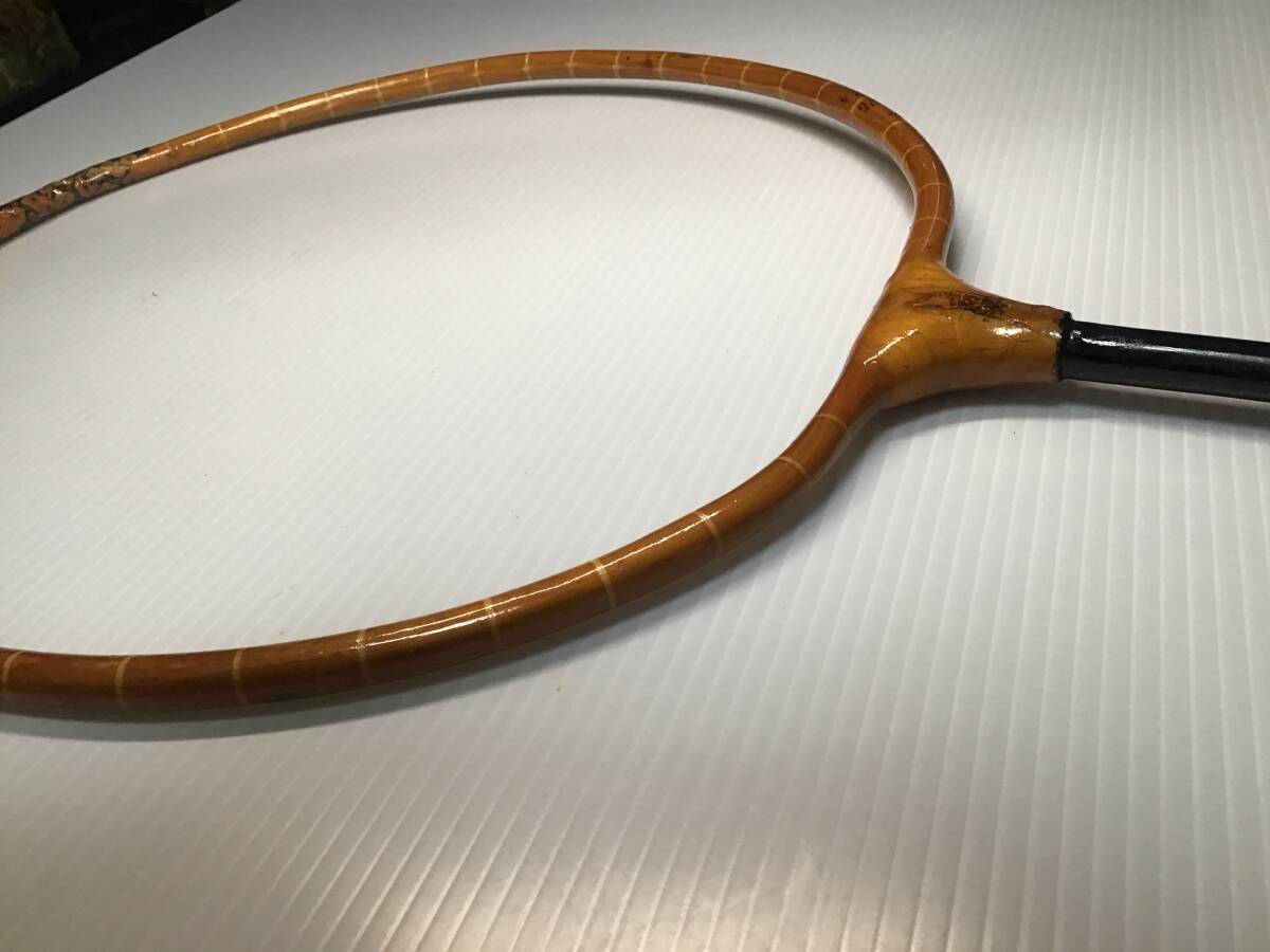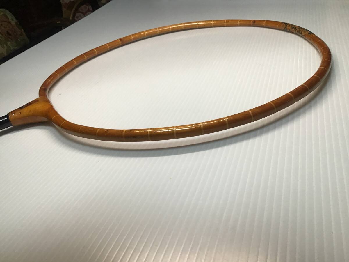 【精魂】の銘ある玉網の枠ですが一部割れがあったので和紙で巻いて漆で固めて修理しました。付いていた網はオマケです。