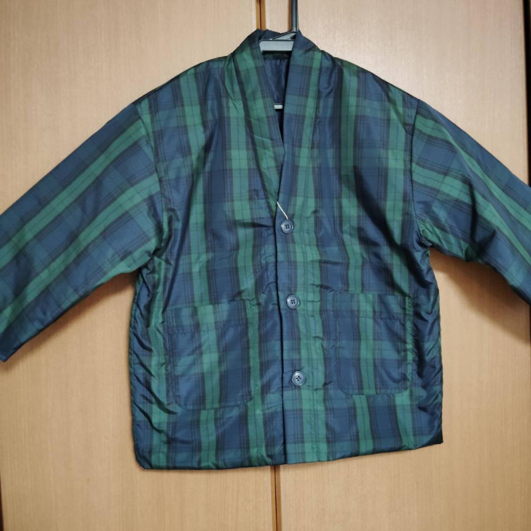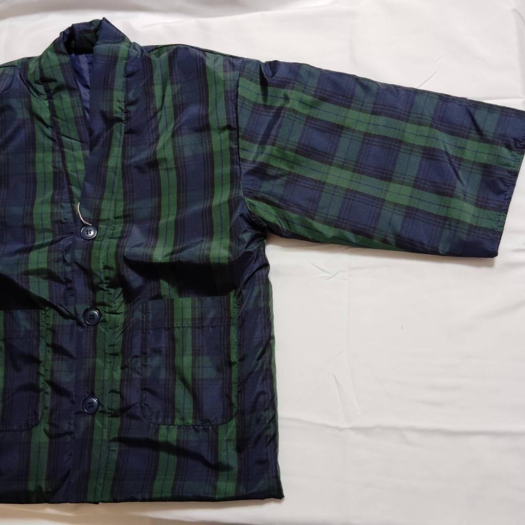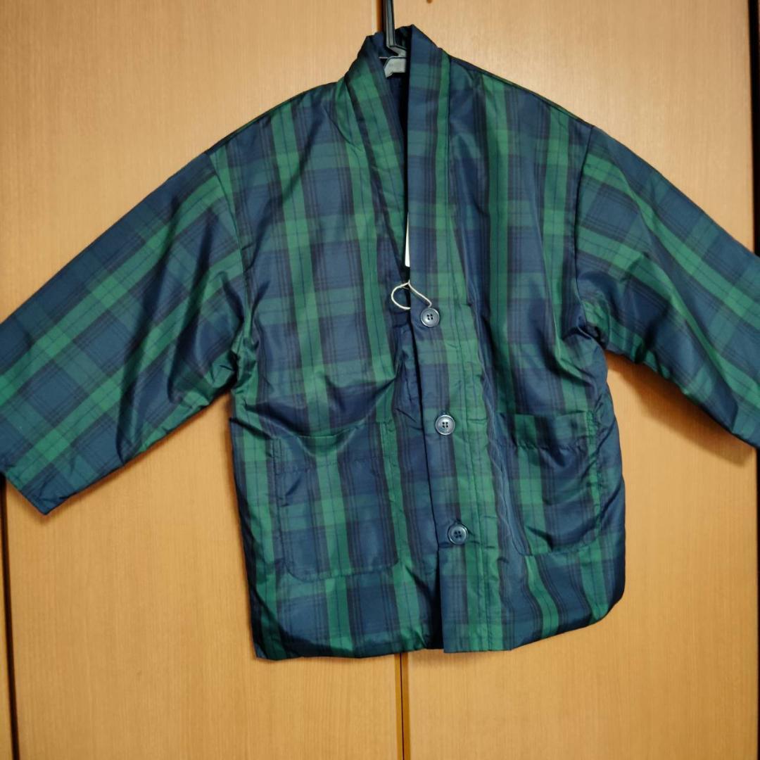 柄: 深みのあるネイビーとグリーンのタータンチェック柄で、秋冬の羽織りにぴったりです。