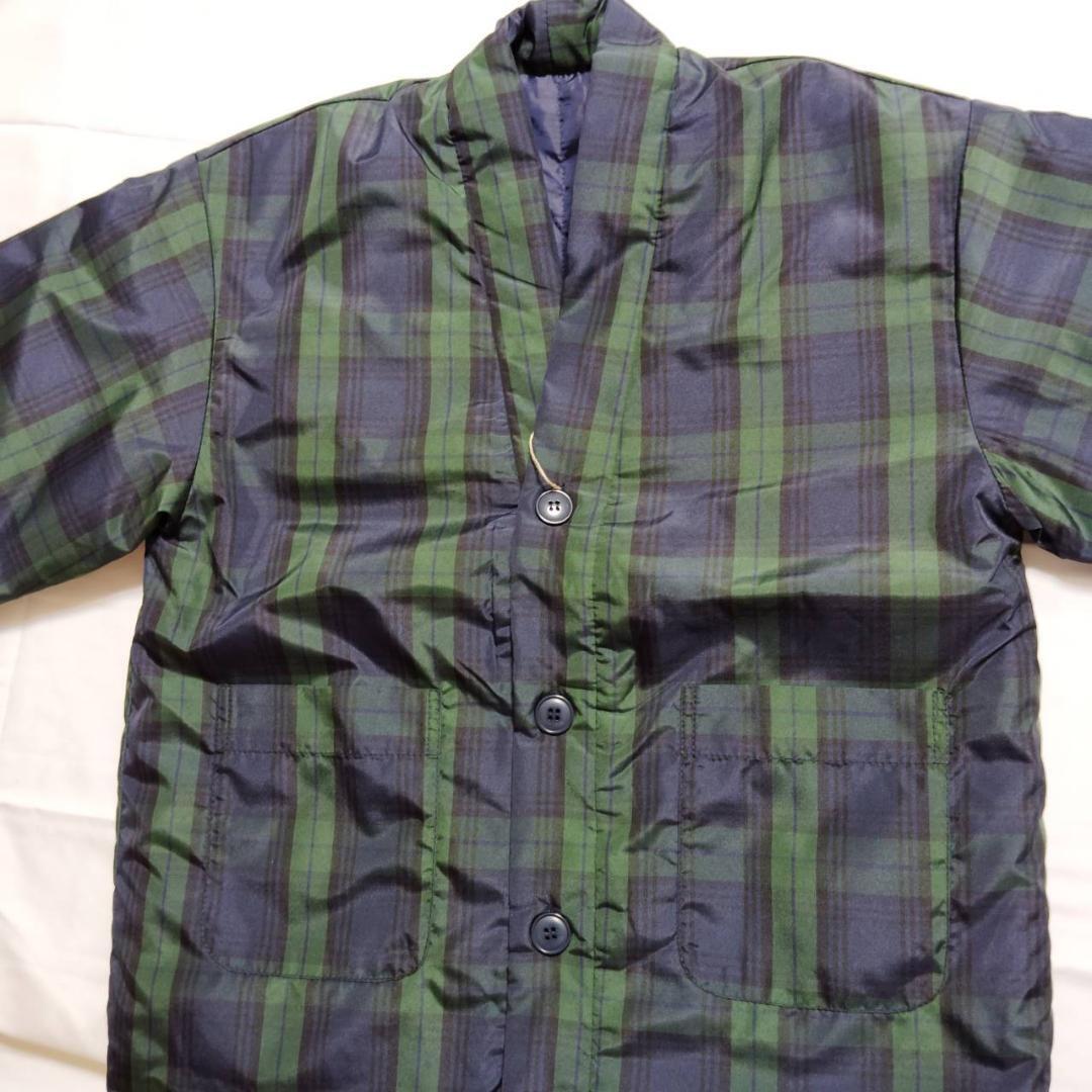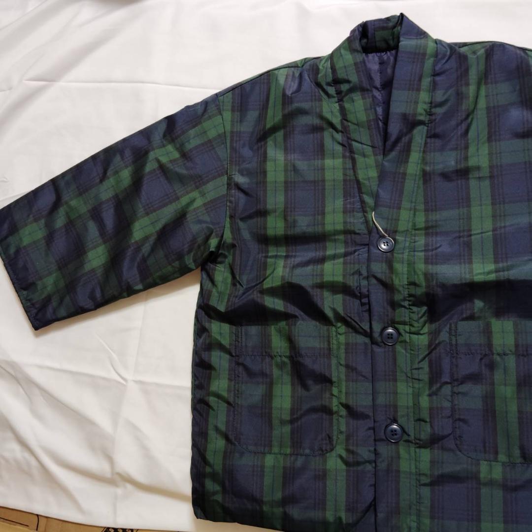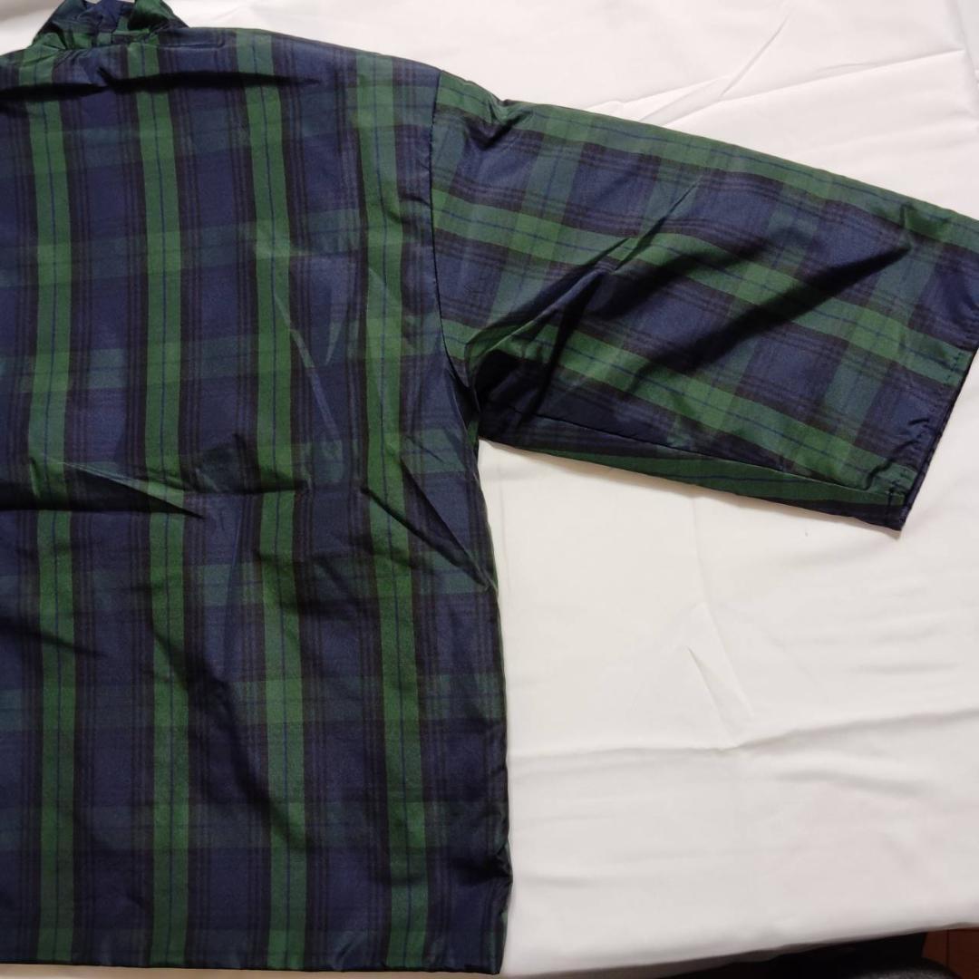 柄: 深みのあるネイビーとグリーンのタータンチェック柄で、秋冬の羽織りにぴったりです。