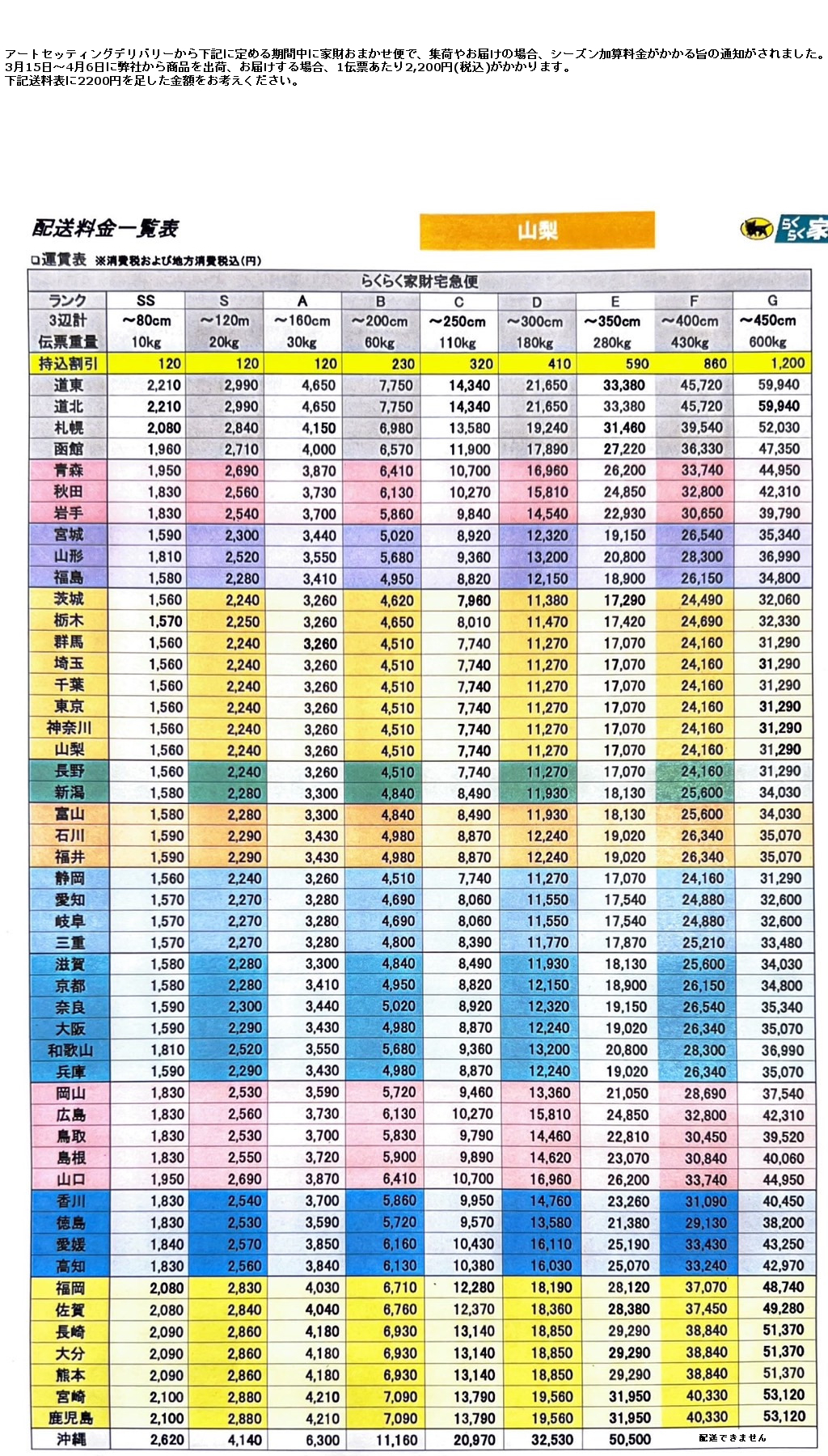 I.家具等超大件或超过30KG的物品,需要增收超重处理费 3000日元/件。