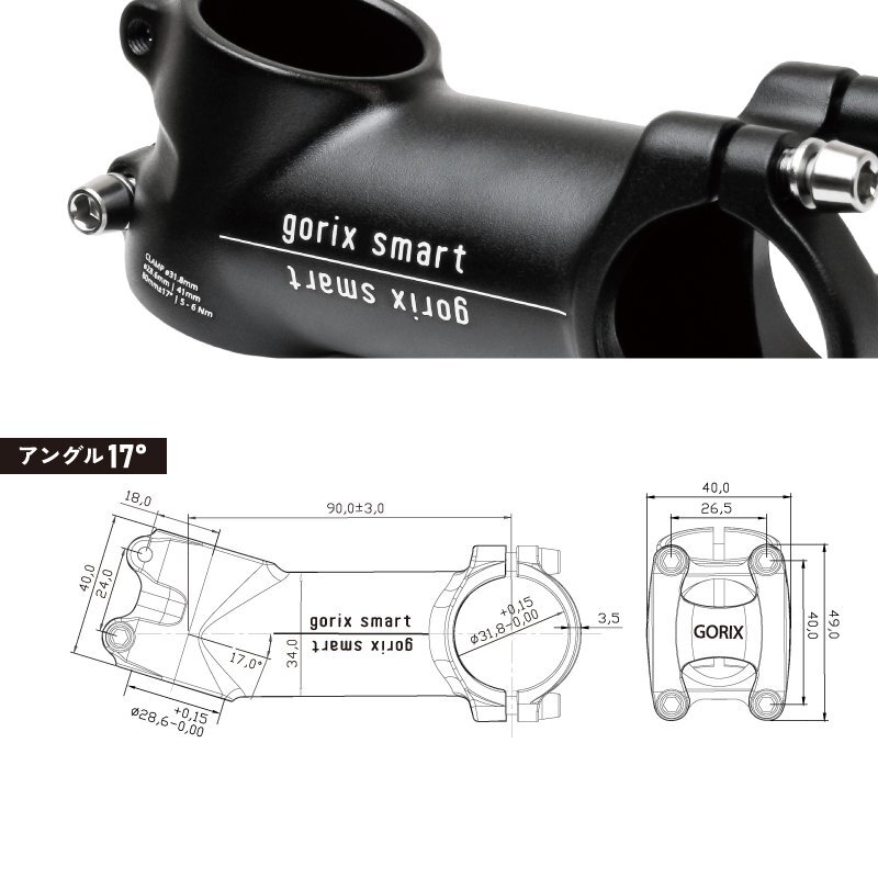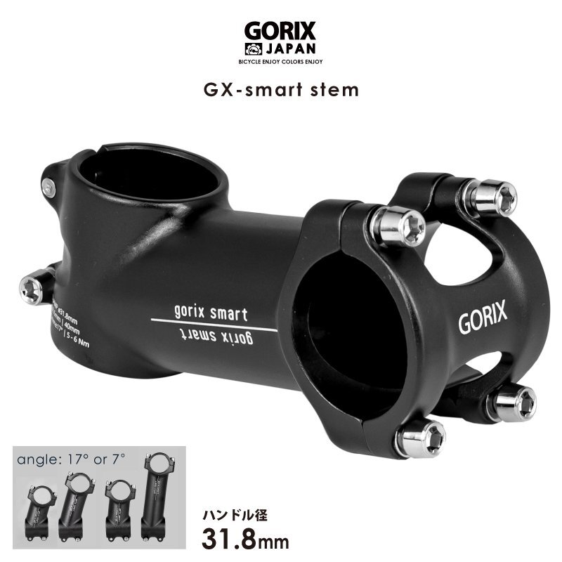 GORIX ゴリックス ステム 軽量 自転車ステム アルミ スマートデザイン ステム (GX-smart) マットブラック 31.8mm 17° 60mm